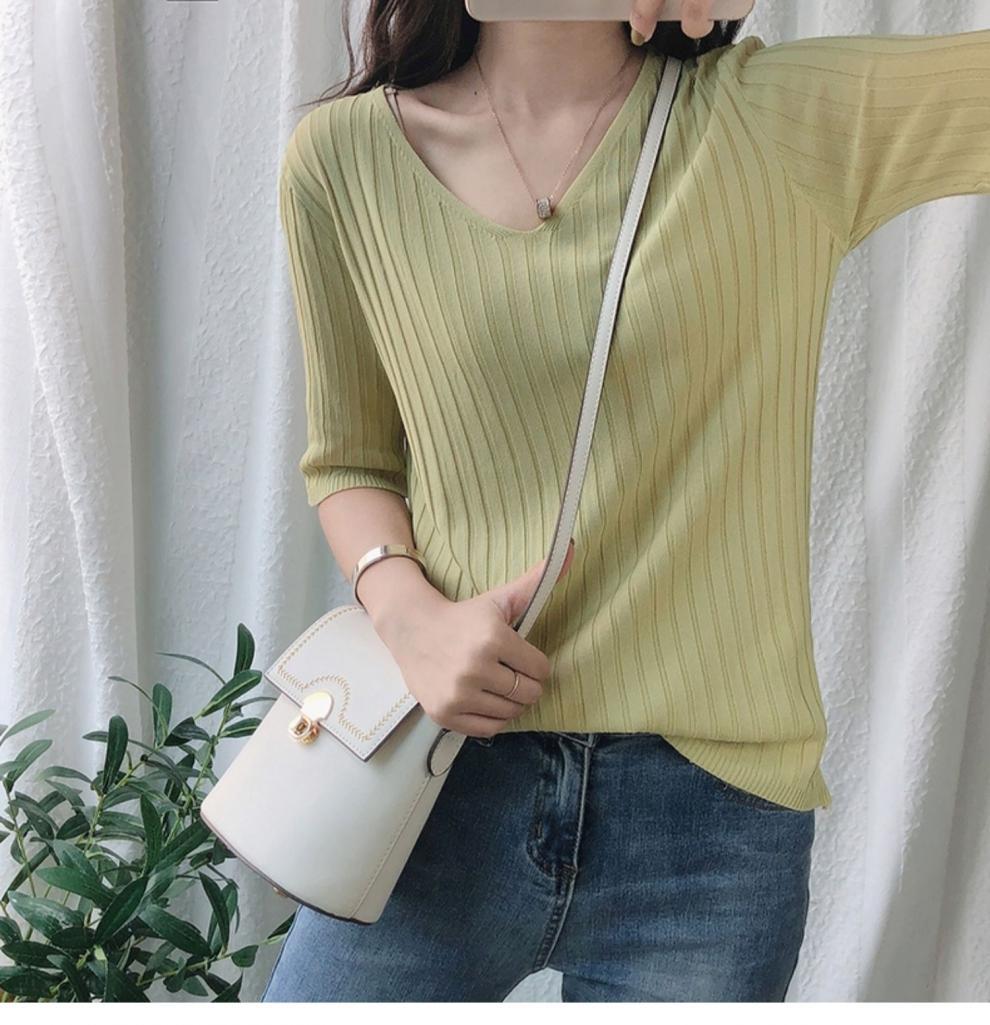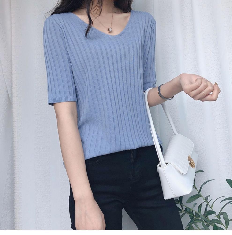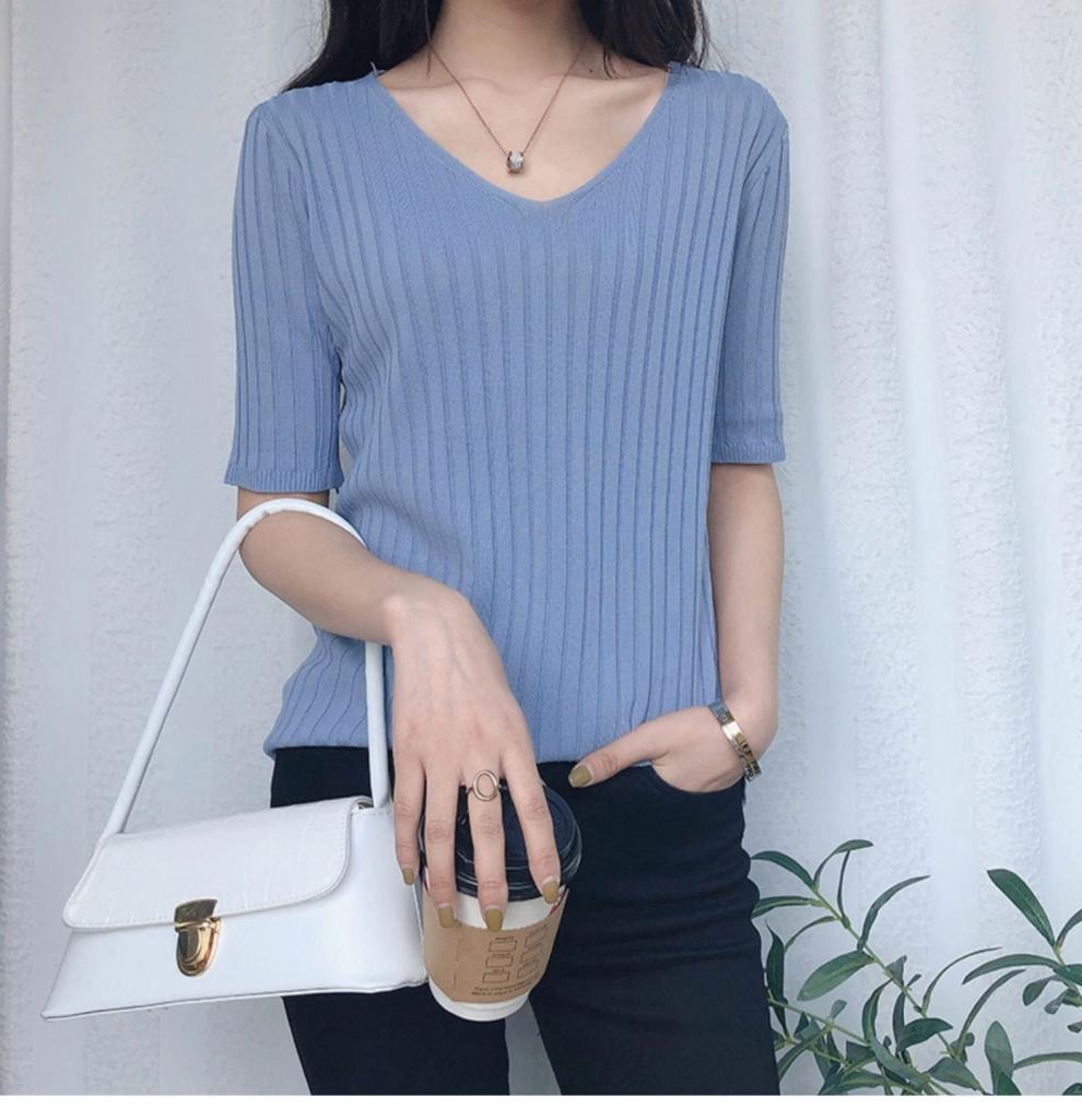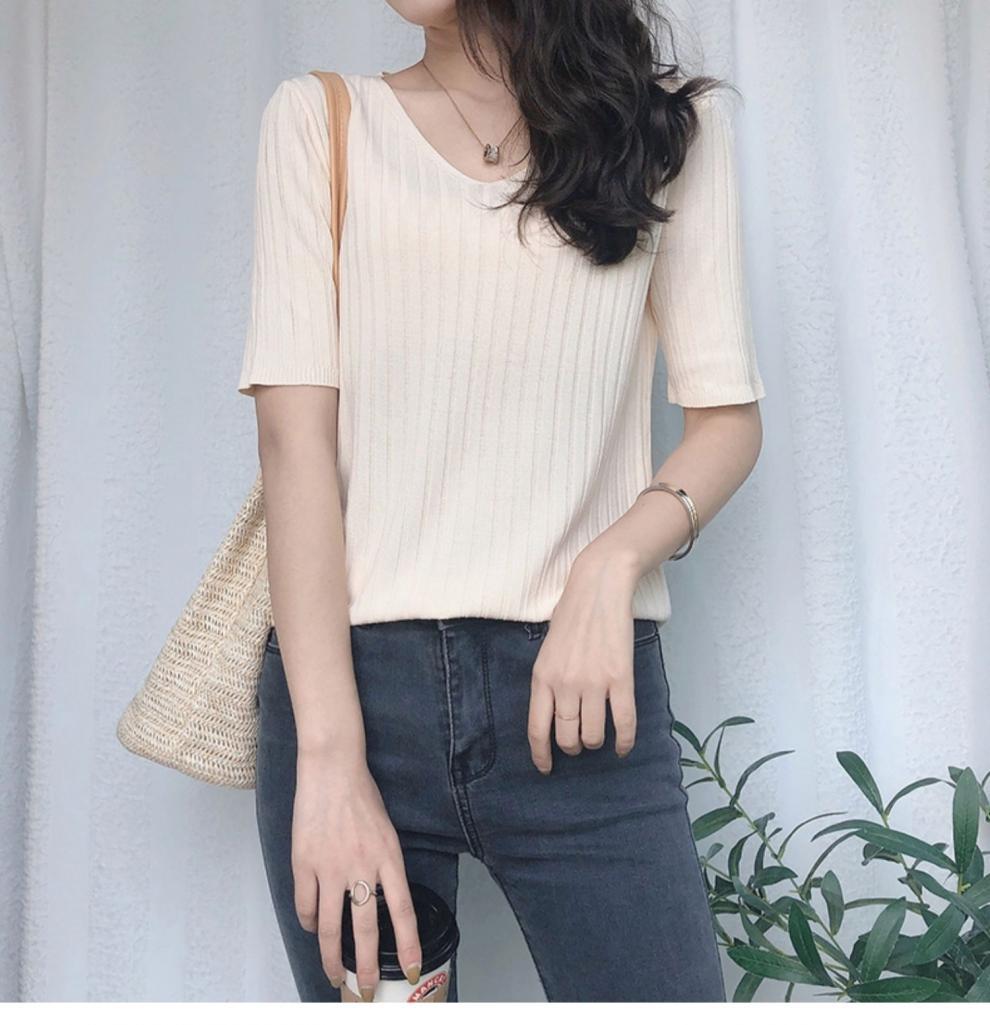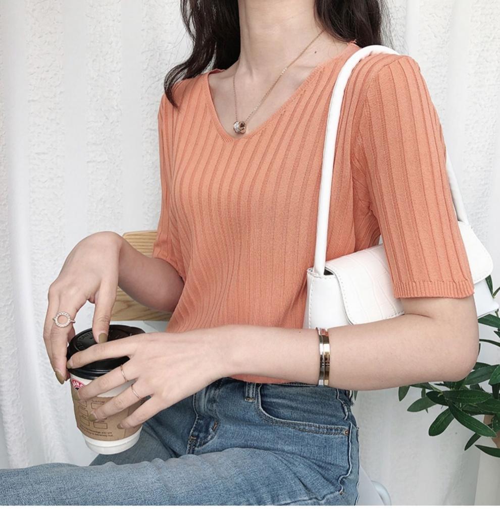 2025 년 여름 새로운 니트 아이스 실크 쿨 V 넥 반팔 티셔츠 여성용 얇은 화이트 올 매치 루즈 탑스토어 가기