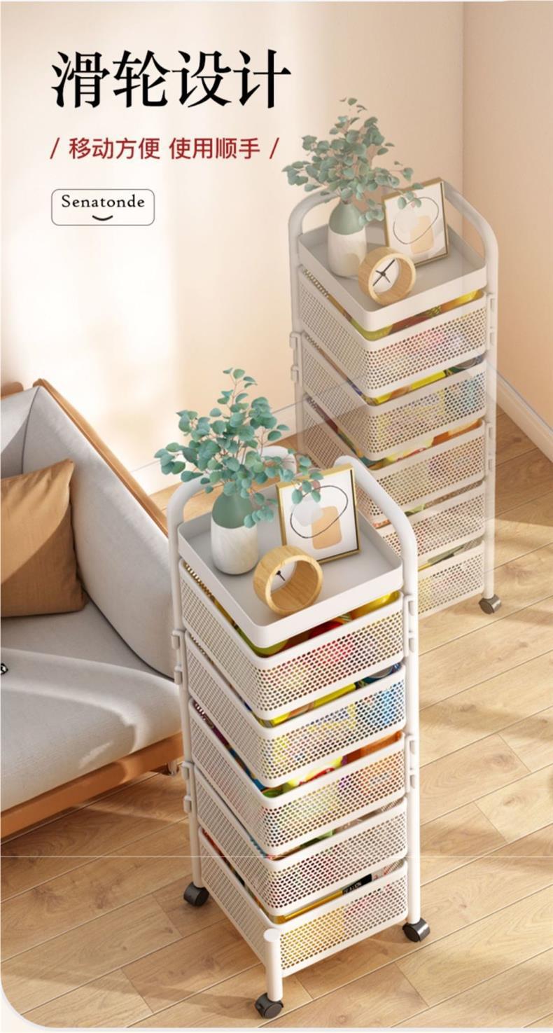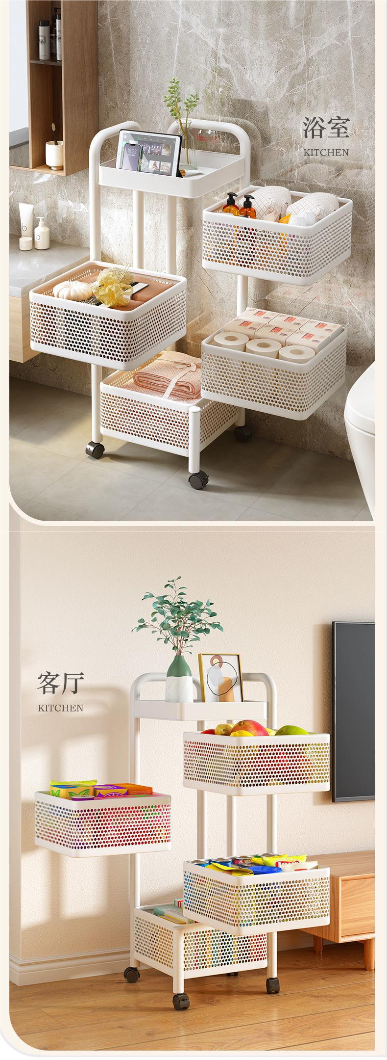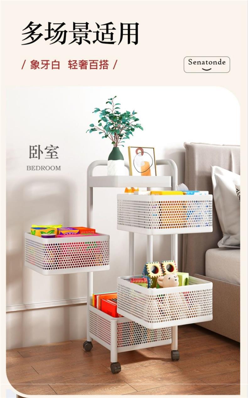 바닥 다층 회전 저장 랙 작은 유모차 아기 제품 저장 랙 모바일 스낵 장난감 과일 저장 랙