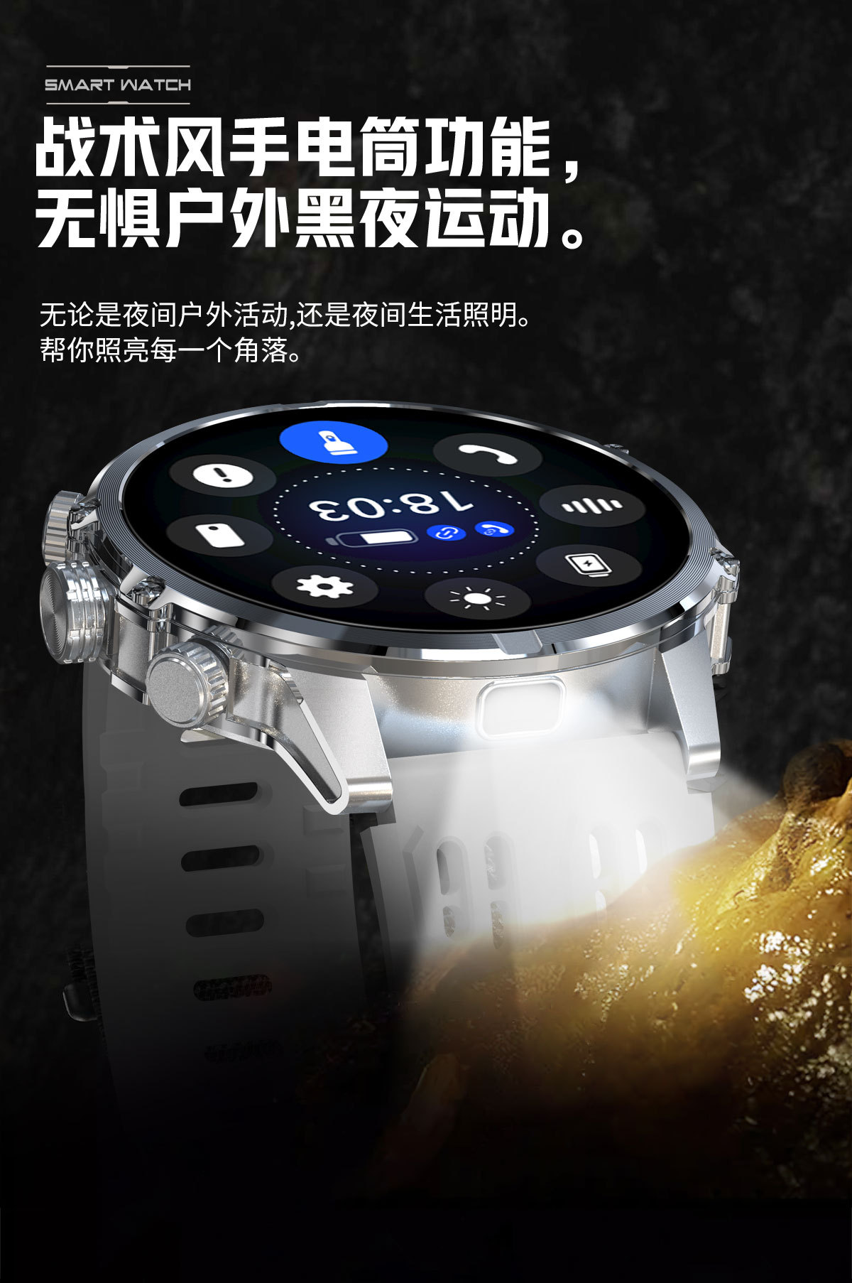 국경 간 CF53 스마트 시계 블루투스 통화 LED 손전등 AMOLED 화면 남성 스포츠 시계 다기능
