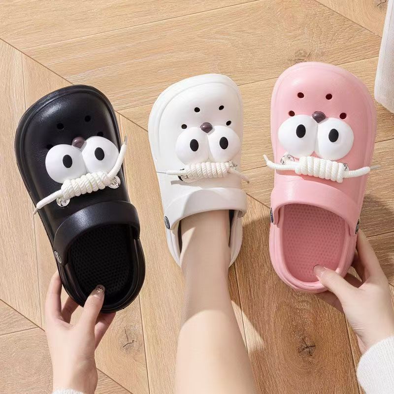 EVA 새로운 만화 큰 눈 여성 구멍 신발 패션 트렌드 비 슬립 귀여운 곰 비치 바오 터우 여성용 샌들스토어 가기