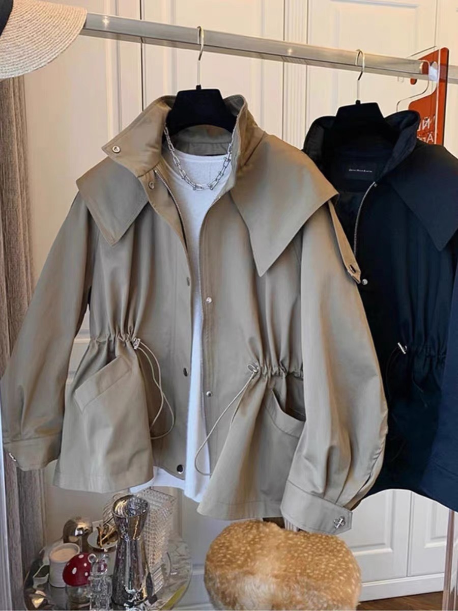 카키 크록 코트 여자 2025 년 새로운 봄과 가을 Maillard Drawstring Top Short Waisted Baseball 세트 재킷