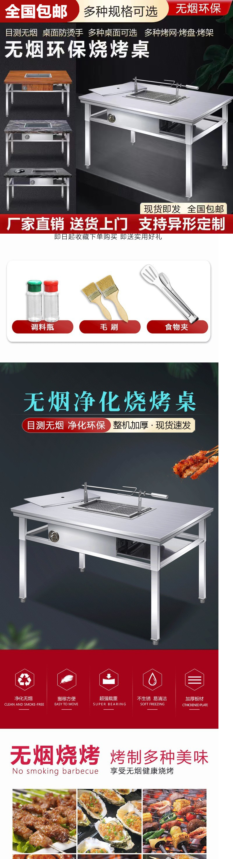 상업용 무연 스테인레스 스틸 바베큐 테이블 셀프 서비스 숯 베이킹 및 세척을위한 양고기 오븐의 야외 스톨 가정용 바베큐 다리스토어 가기