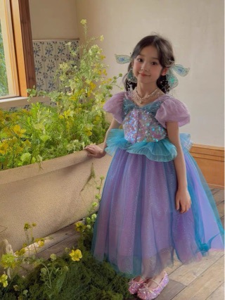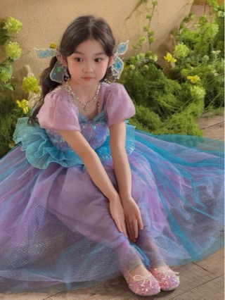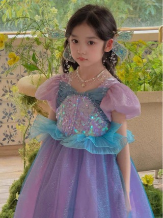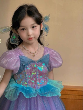 DG 2025 봄과 여름 새 소녀 반팔 원피스 스킴 메쉬 퍼프 인어 공주 원피스 원피스 원피스스토어 가기