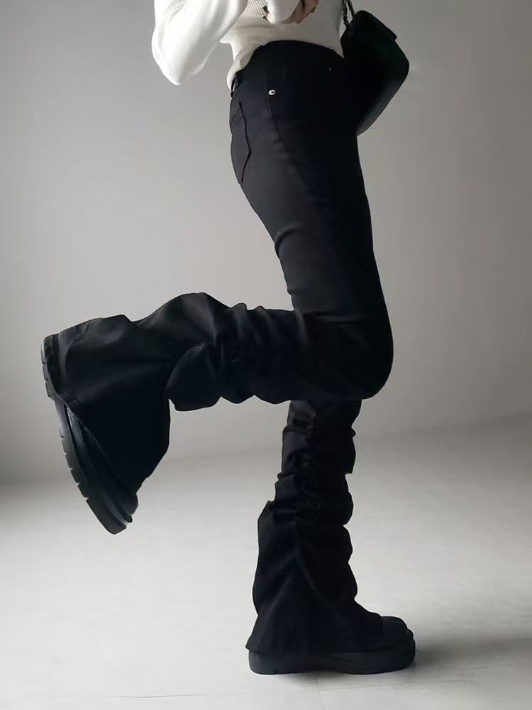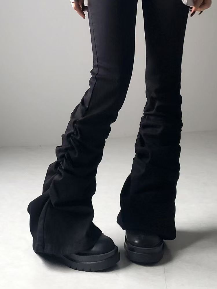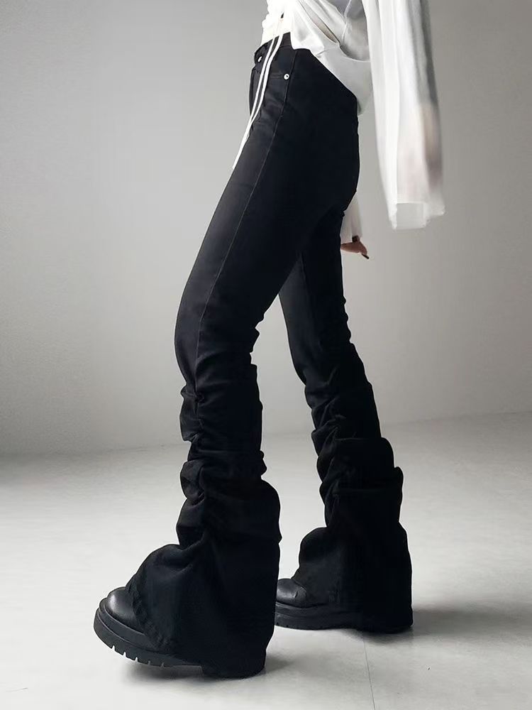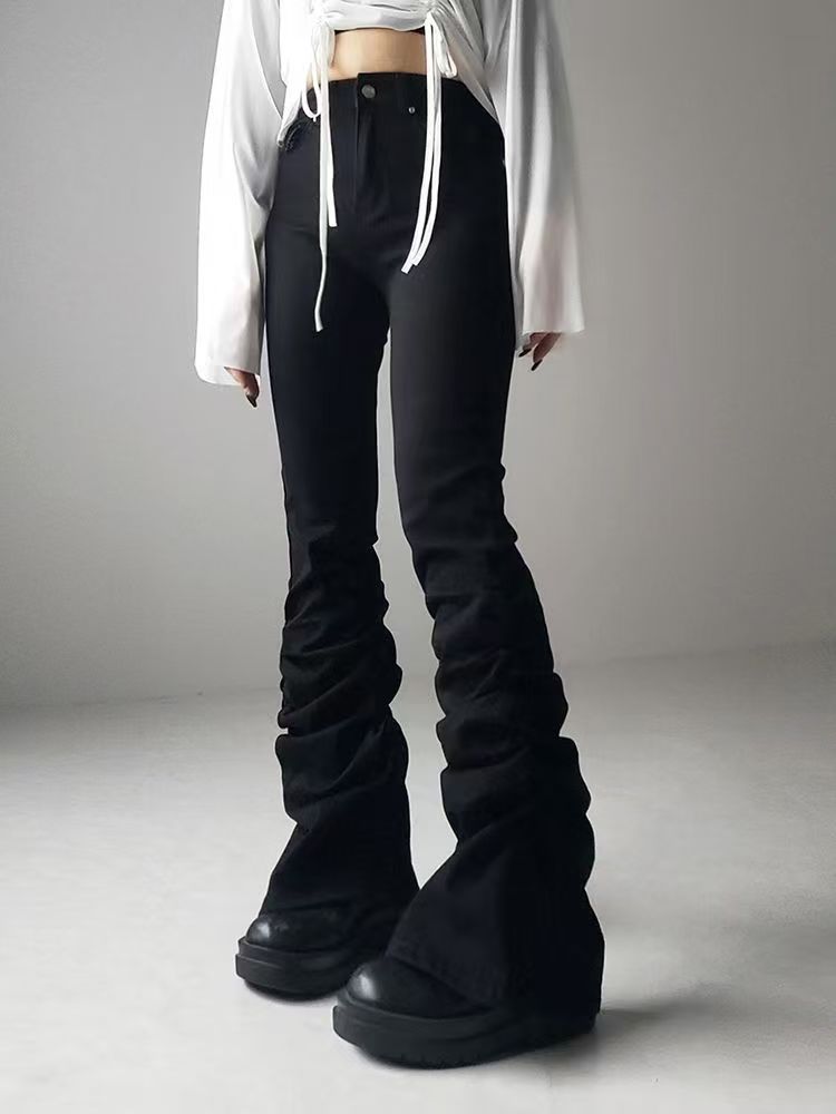 American Style Street Photoshoot 높은 허리 주름진 진 청바지 여성용 스트레이트 다리 바지 슬림 슬림 핏 바지