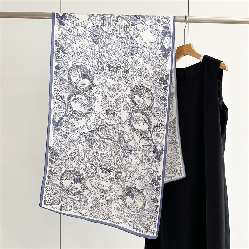 고급 패션 올매치 뽕나무 실크 스카프 여성의 봄과 여름 새로운 우아한 꽃 실크 긴 목도리 스카프