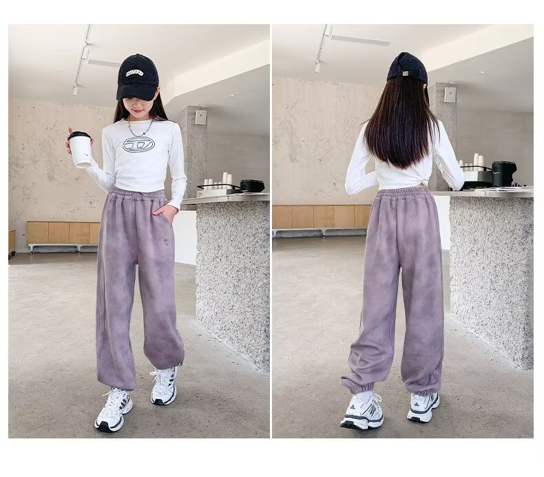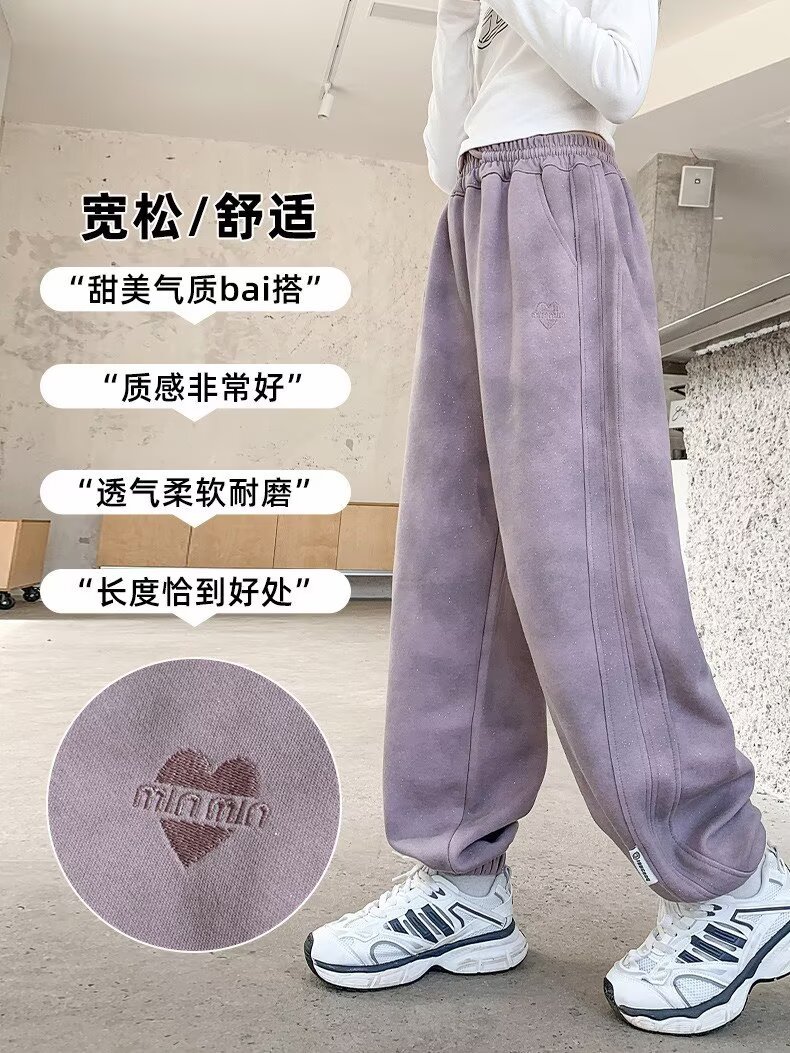 소녀 2025 봄과 가을 서양식 바지 어린이 캐주얼 스포츠 바지 새로운 스타일 큰 어린이 봄과 가을 캐주얼 달콤한 바지스토어 가기