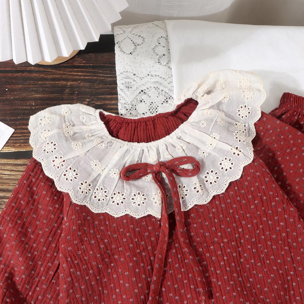 여자 면 원사 잠옷 어린이 봄과 여름 면 레이스 홈 옷 여성의 보물 얇은 더블 거즈 달콤한 속옷 가을