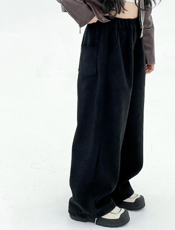 소녀 검은 바지 봄과 가을 2025 새로운 어린이 넓은 다리 바지 큰 어린이 다크 브라운 캐주얼 스트레이트 바지 봄스토어 가기