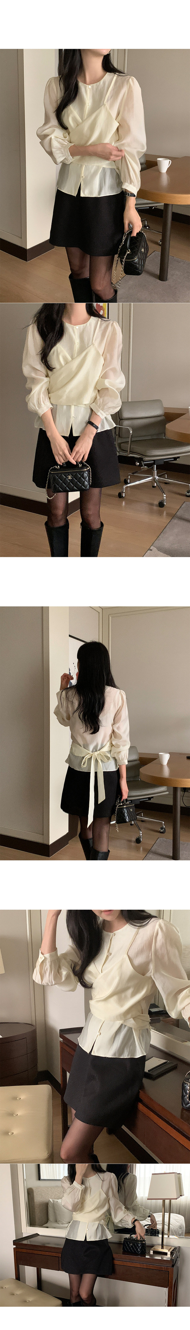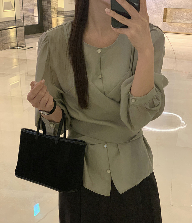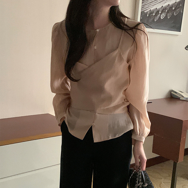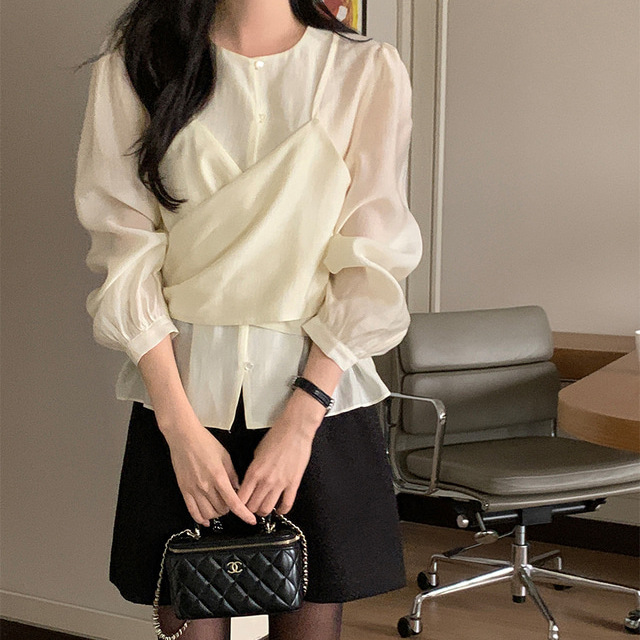 한국 세련된 쌓인 크로스 레이스 업 셔츠 최고 여성의 2025 년 봄과 여름 달콤한 신선한 세련된 쉬폰 셔츠스토어 가기