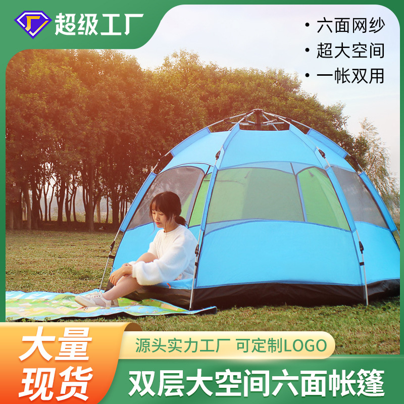 센추리 빙하 완전 자동 더블 더블 육각형 텐트 야외 3-4 명 캠핑 비방 캠핑 빠른 오프닝 비치스토어 가기