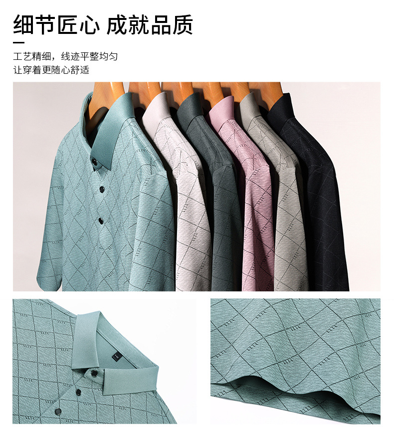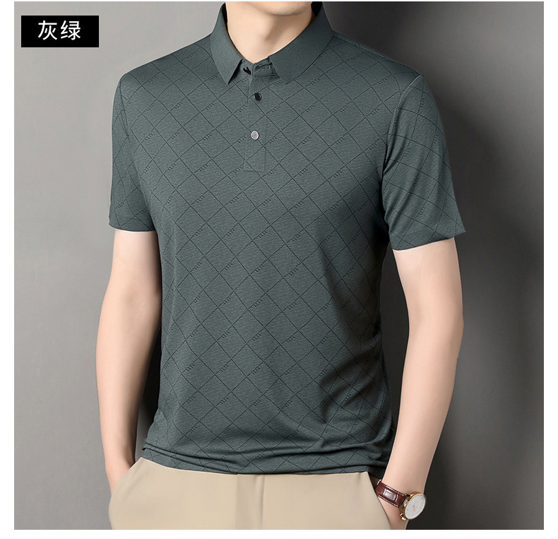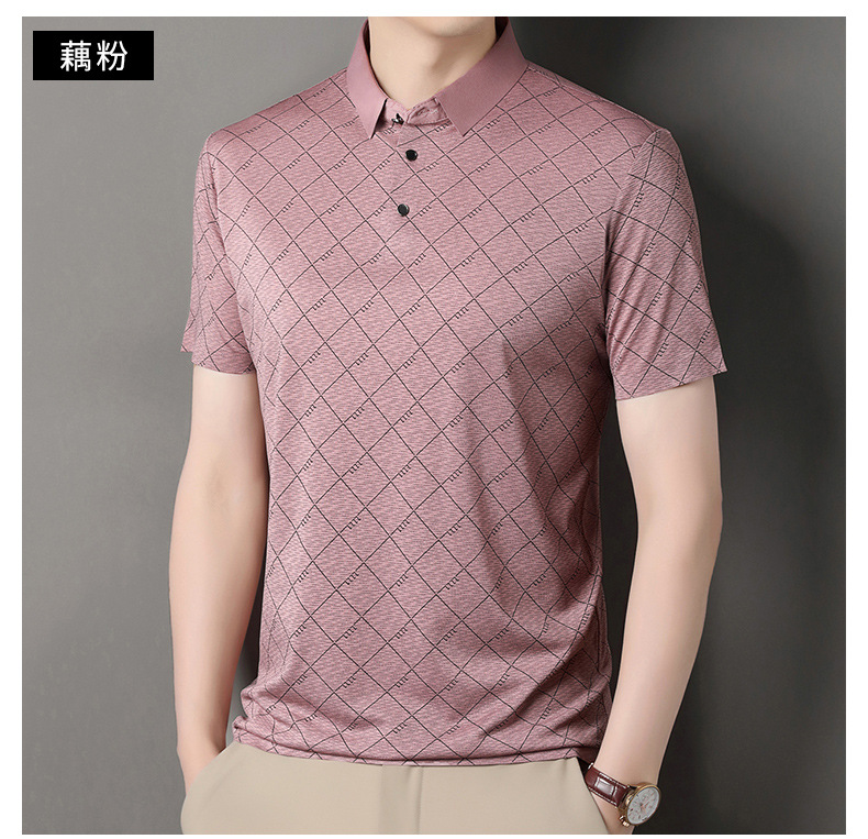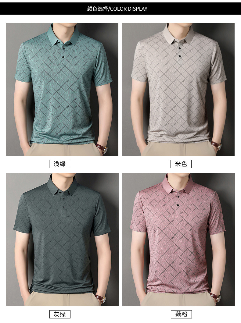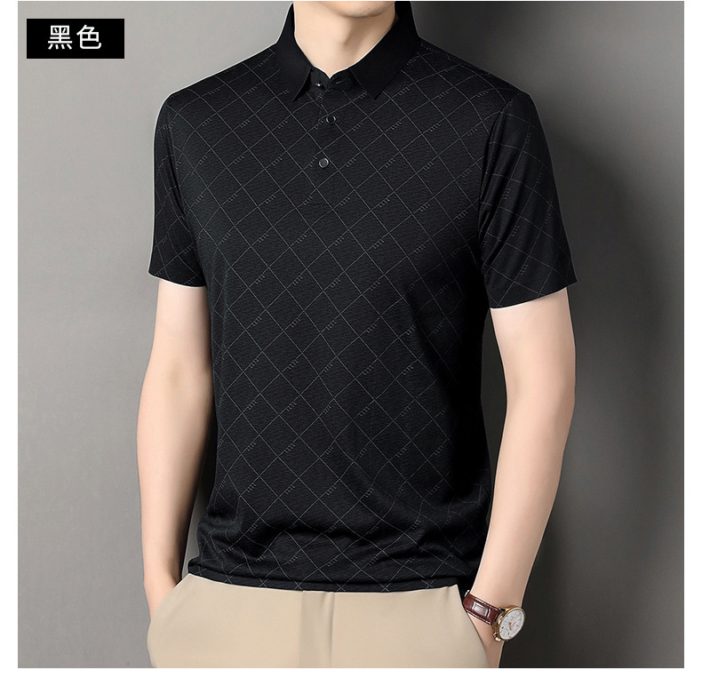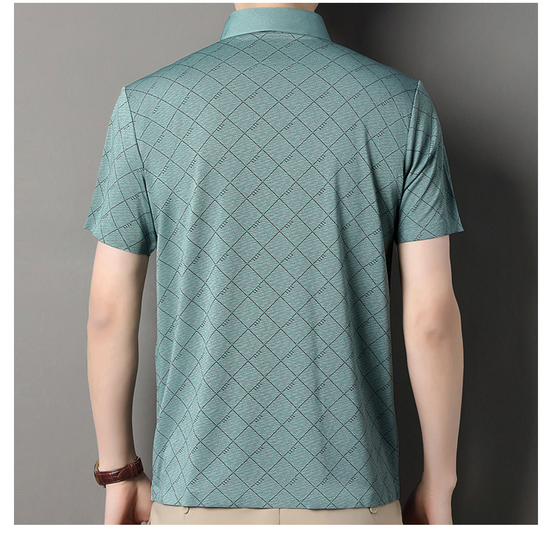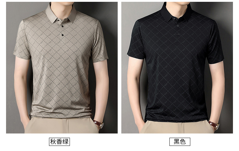 2025 새로운 남성 여름 중년 및 노인 반팔 폴로 셔츠 남성 의류 체크 반소매 셔츠 칼라 티셔츠