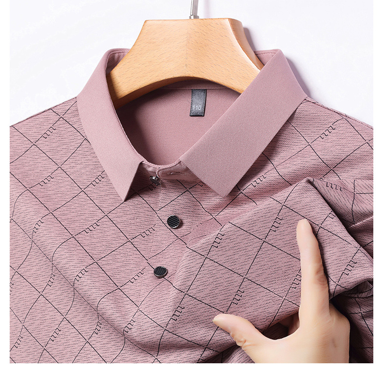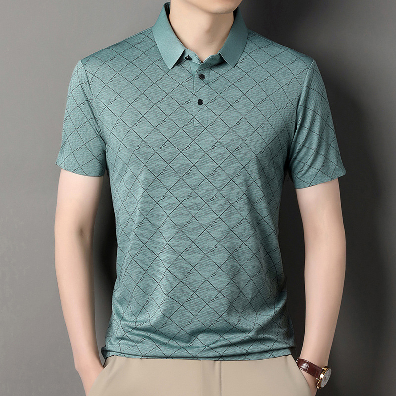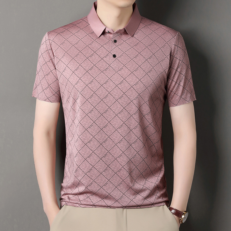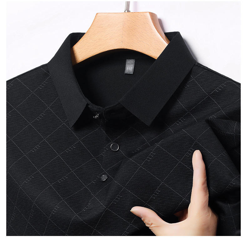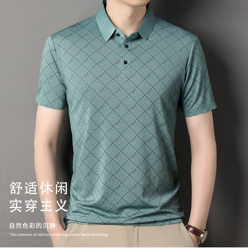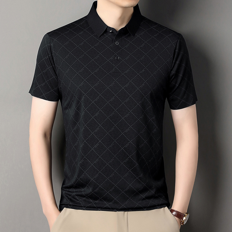 2025 새로운 남성 여름 중년 및 노인 반팔 폴로 셔츠 남성 의류 체크 반소매 셔츠 칼라 티셔츠