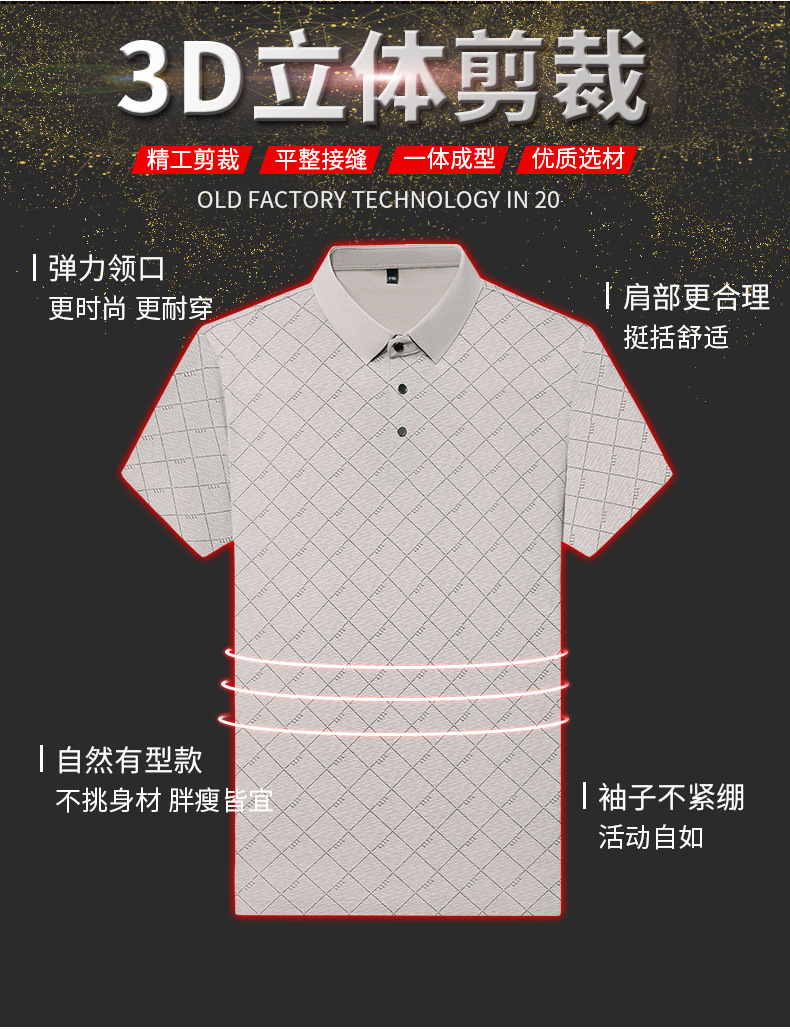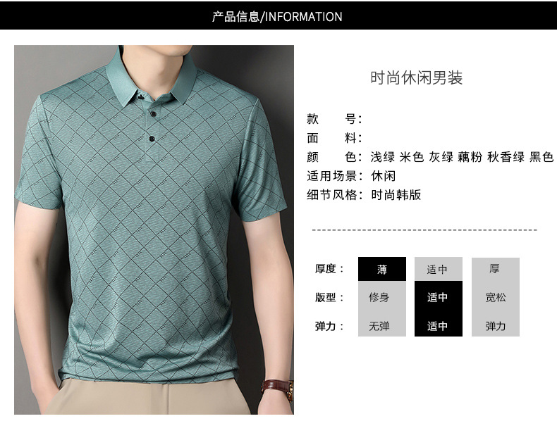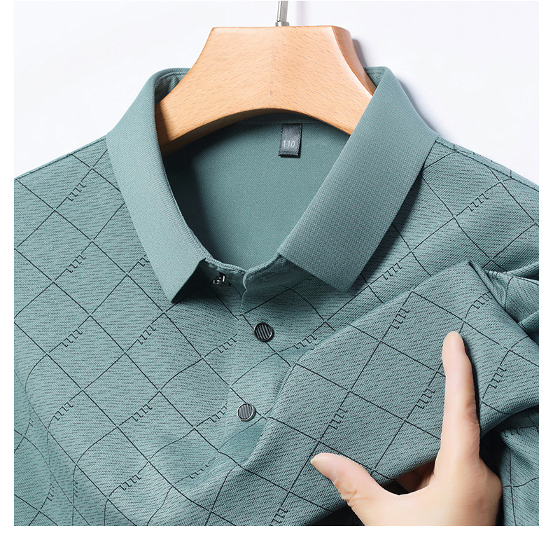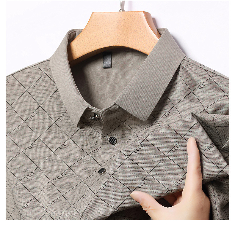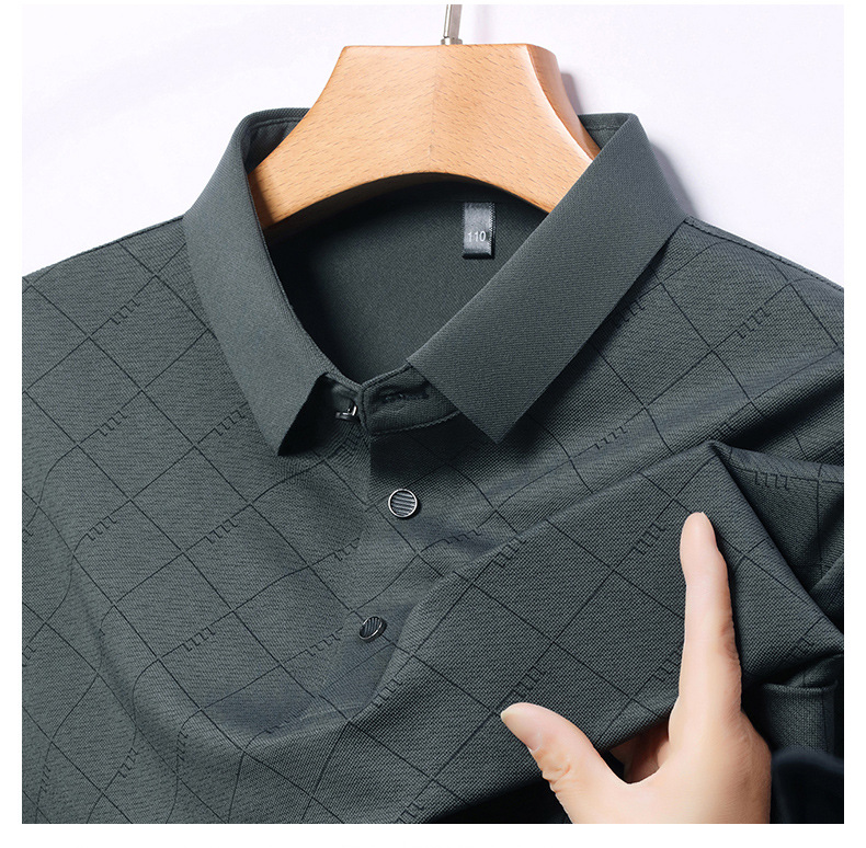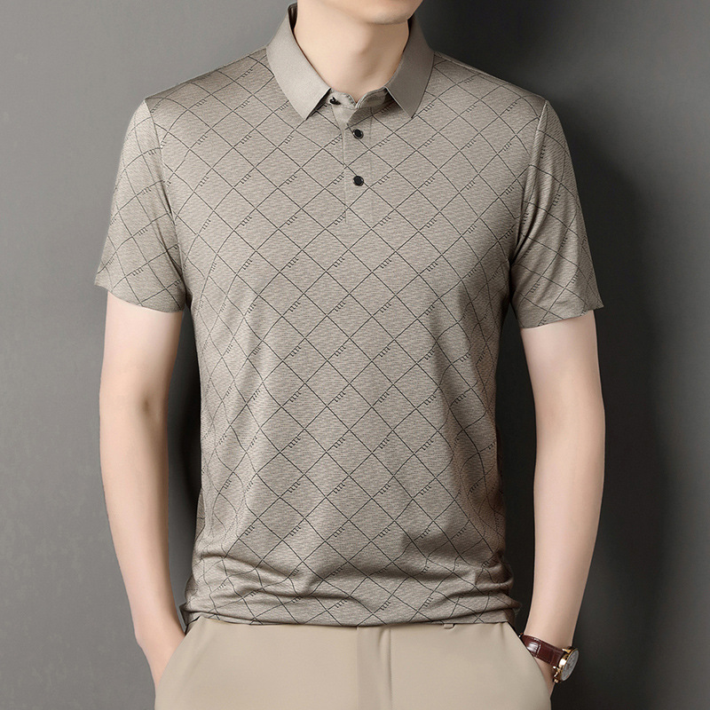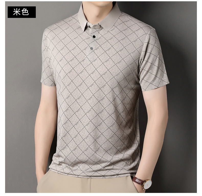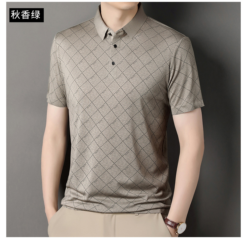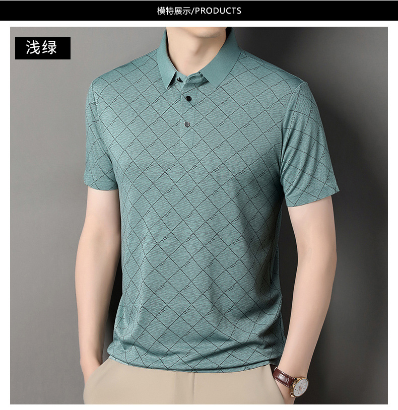 2025 새로운 남성 여름 중년 및 노인 반팔 폴로 셔츠 남성 의류 체크 반소매 셔츠 칼라 티셔츠스토어 가기