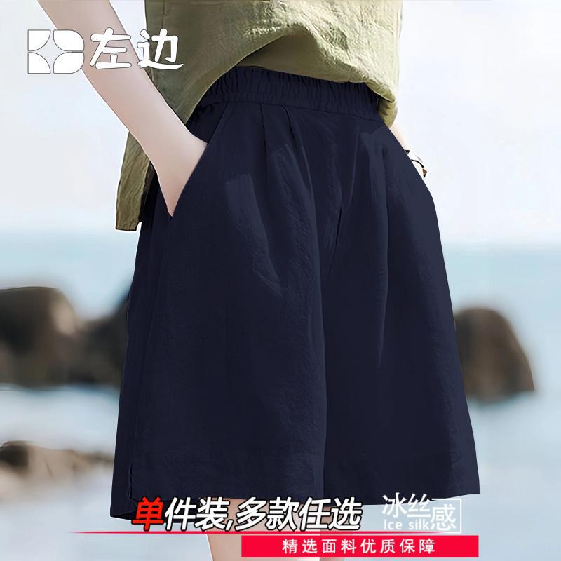 아이스 실크 반바지 여성의 여름 얇은 높은 허리 주름 게으른 바지 느슨한 슬리밍 캐주얼 쿨 와이드 다리 바지스토어 가기