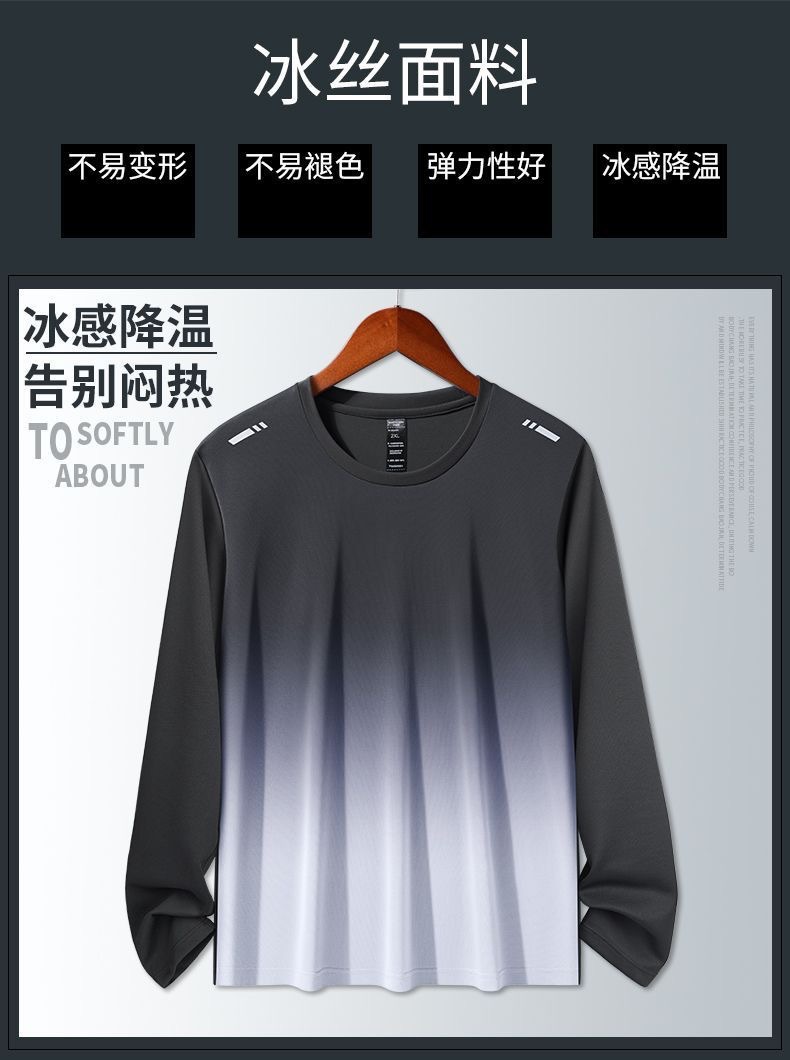 빠른 건조 티셔츠 남성용 아이스 실크 봄과 여름 얇은 스포츠 긴팔 느슨한 피트니스 옷 훈련 러닝 의류 새 탑