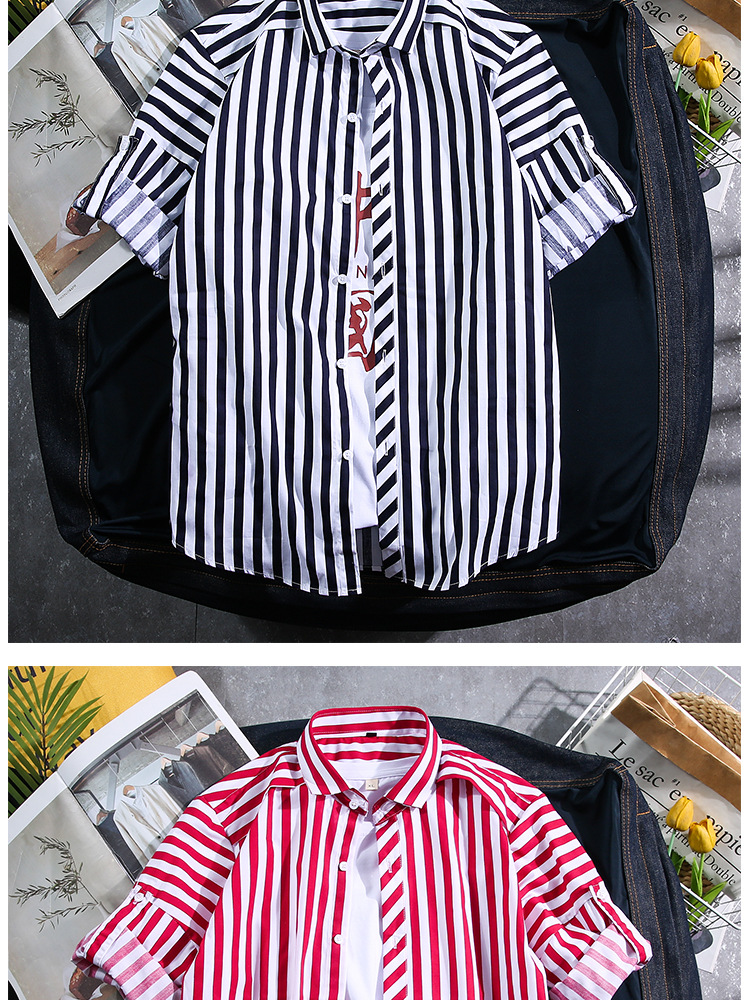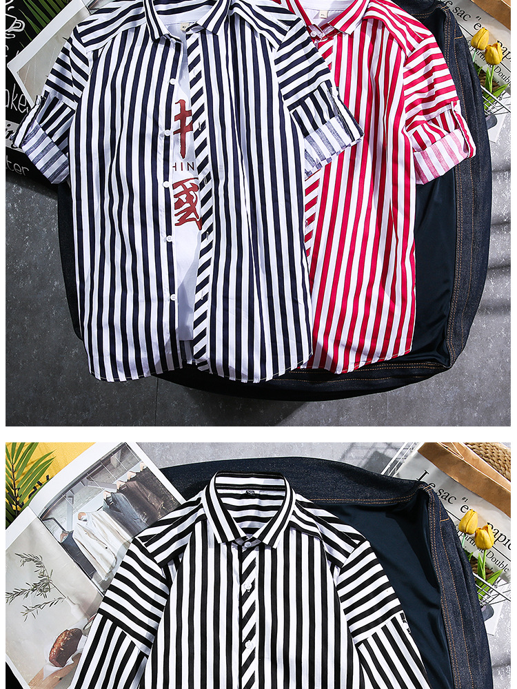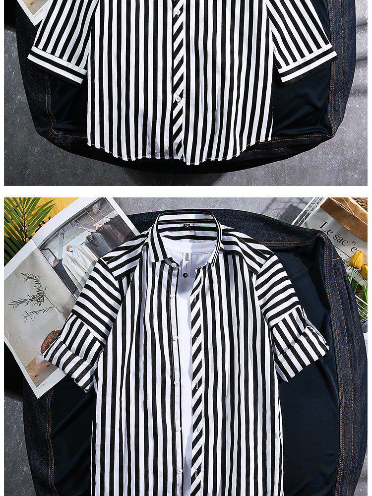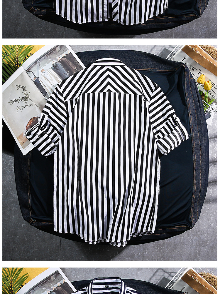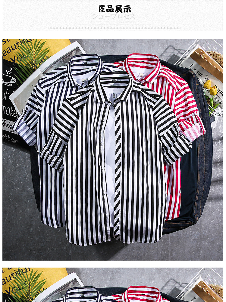 남성 조수 7 소매 패션 슬림 스트라이프 소매 셔츠 한 세대 대외 무역 102-P20스토어 가기