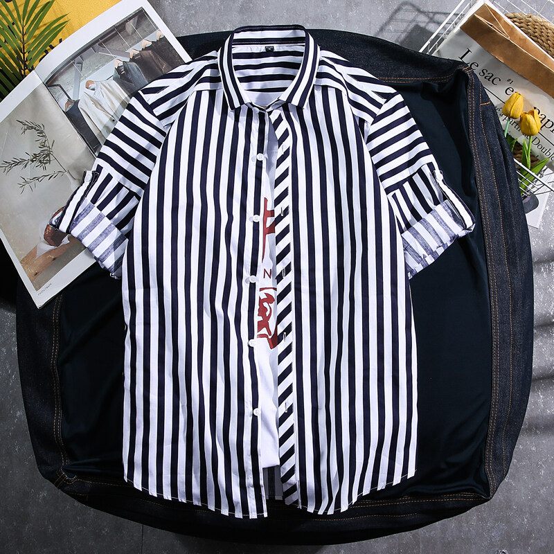남성 조수 7 소매 패션 슬림 스트라이프 소매 셔츠 한 세대 대외 무역 102-P20