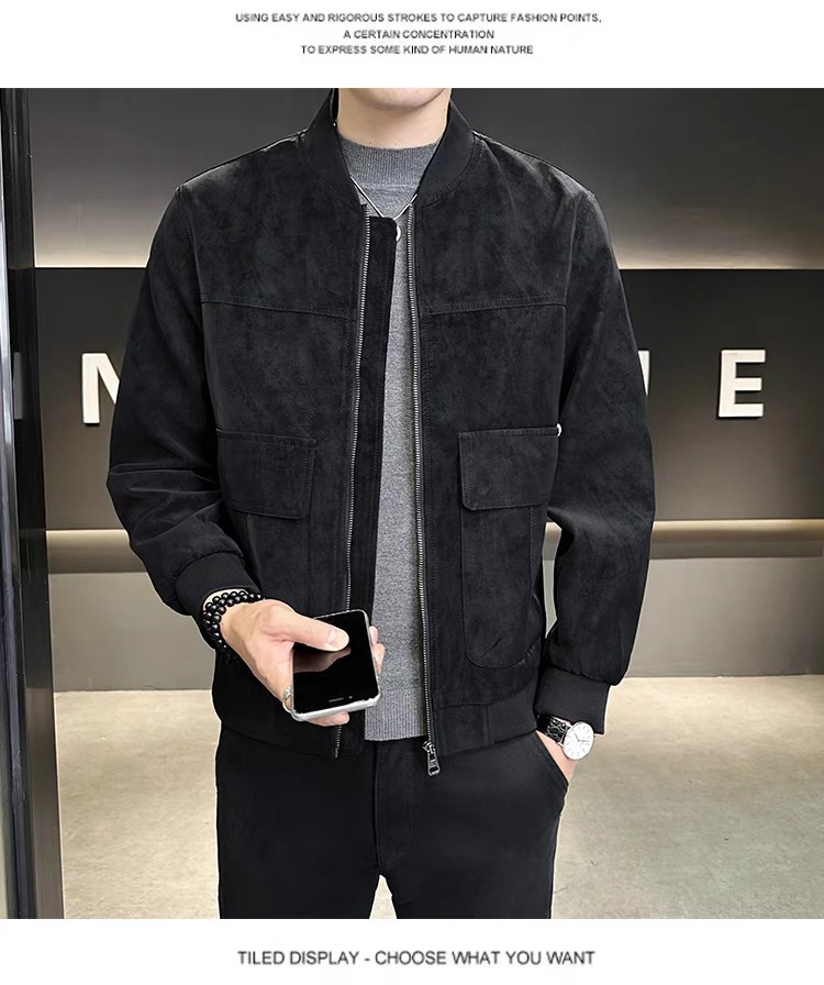 플러스 사이즈 재킷 재킷 남자 봄과 가을 2024 새로운 패션 브랜드 야구 의류 남자 오토바이 스웨이드 재킷 재고