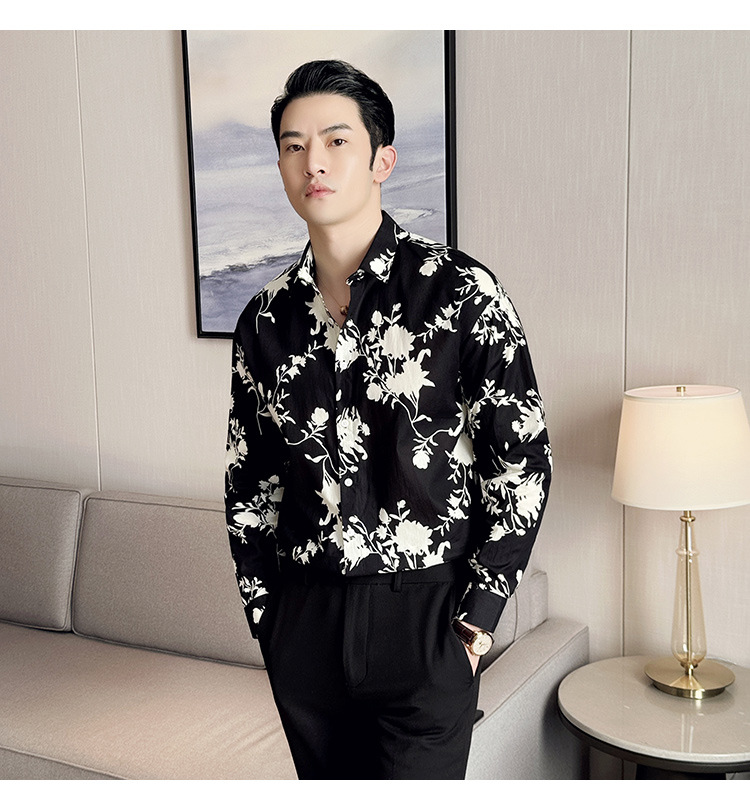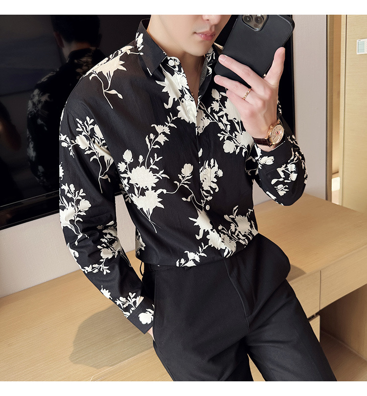 타이드 남성 캐주얼 패션 멀티 컬러 꽃 셔츠 긴 소매 셔츠 한 세대 대외 무역 1049-P35