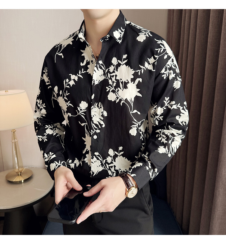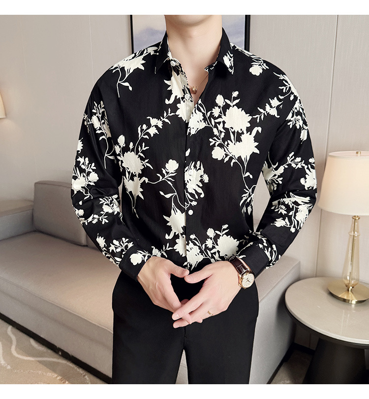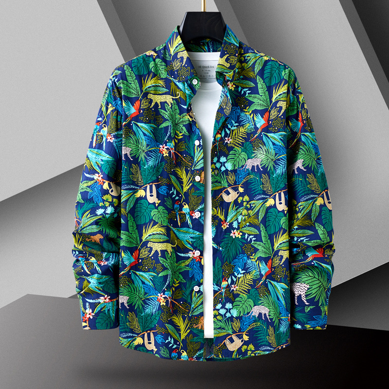 타이드 남성 캐주얼 패션 멀티 컬러 꽃 셔츠 긴 소매 셔츠 한 세대 대외 무역 1049-P35스토어 가기