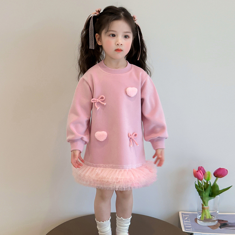 소녀 원피스 봄 원피스 2025 새로운 스타일 어린이 달콤한 아기 공주 원피스 봄과 가을 메쉬 땀 원피스스토어 가기