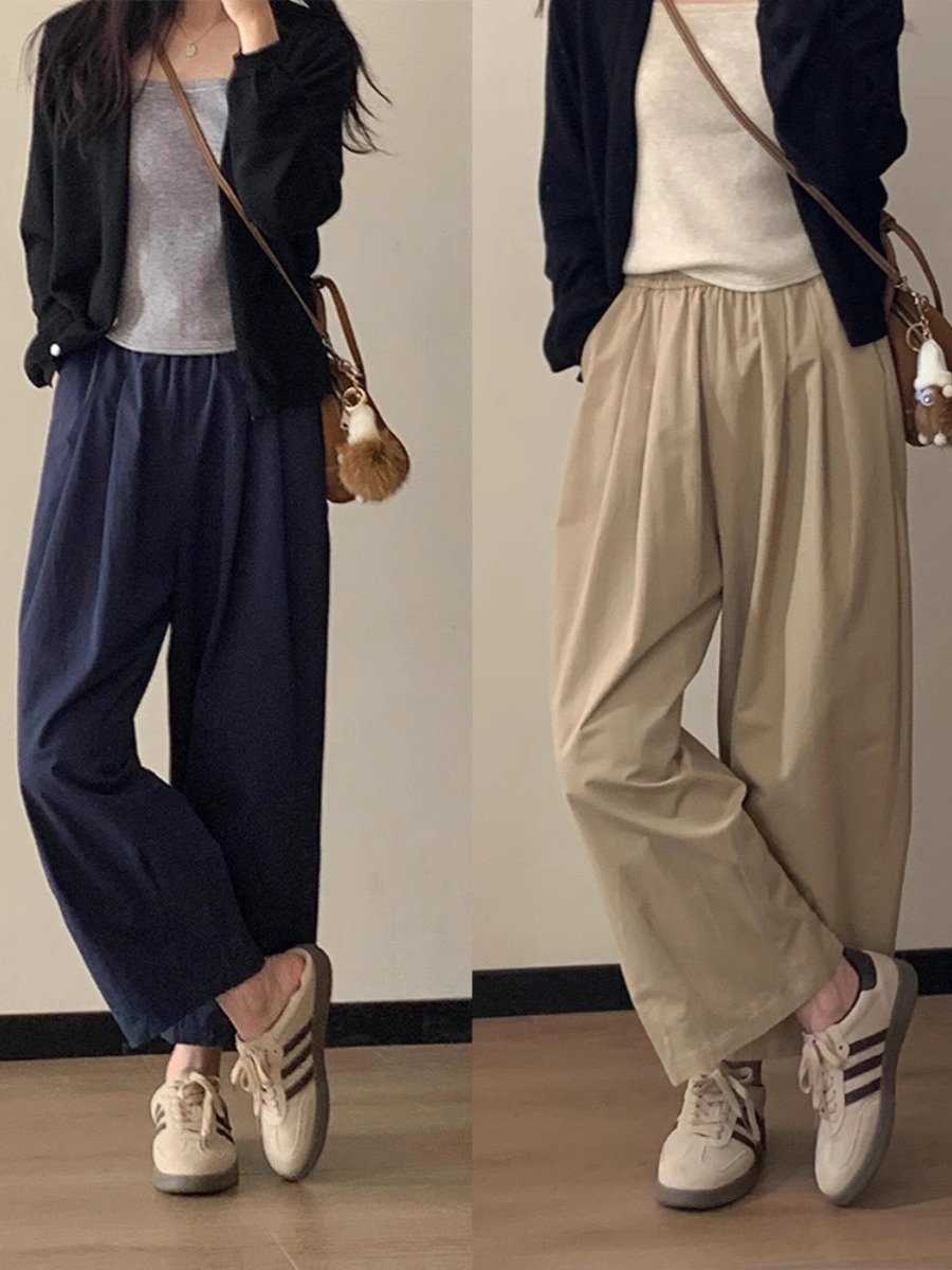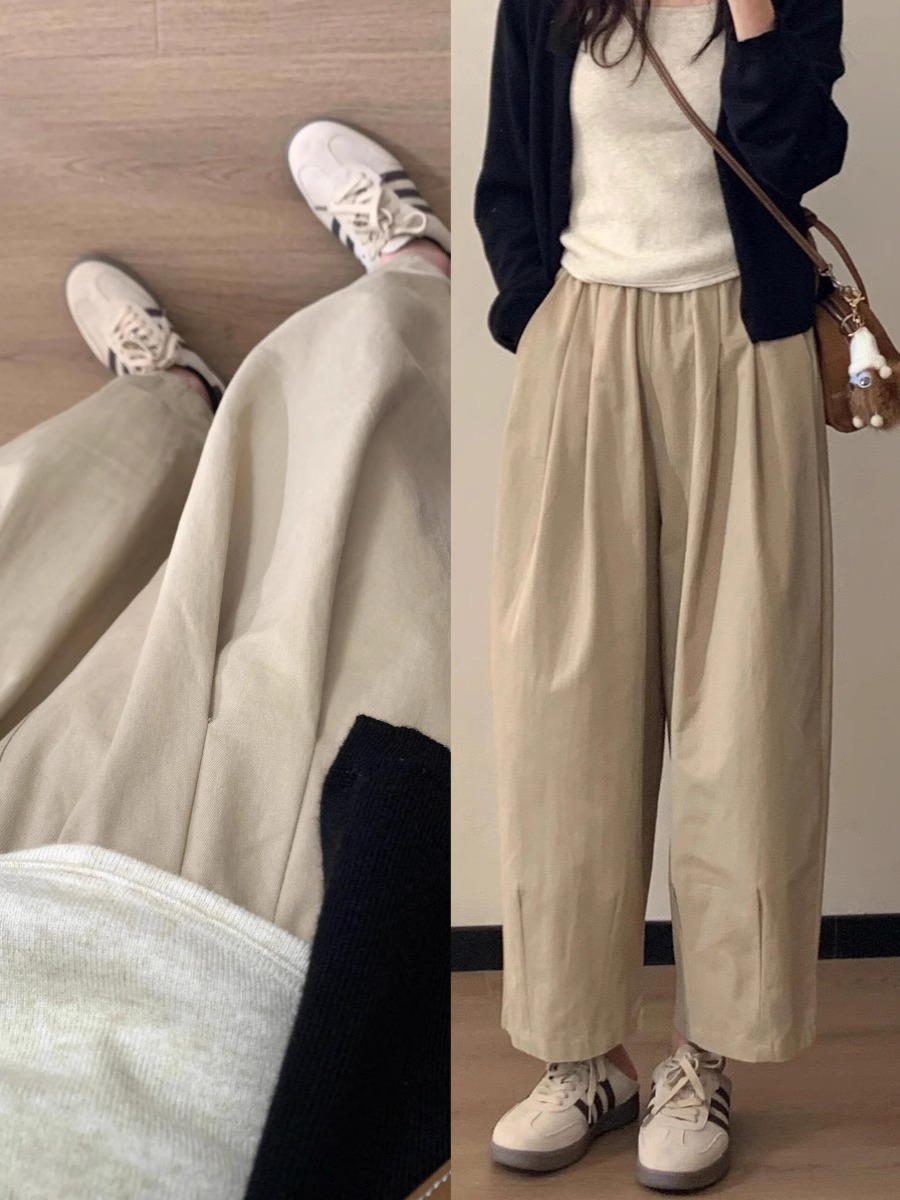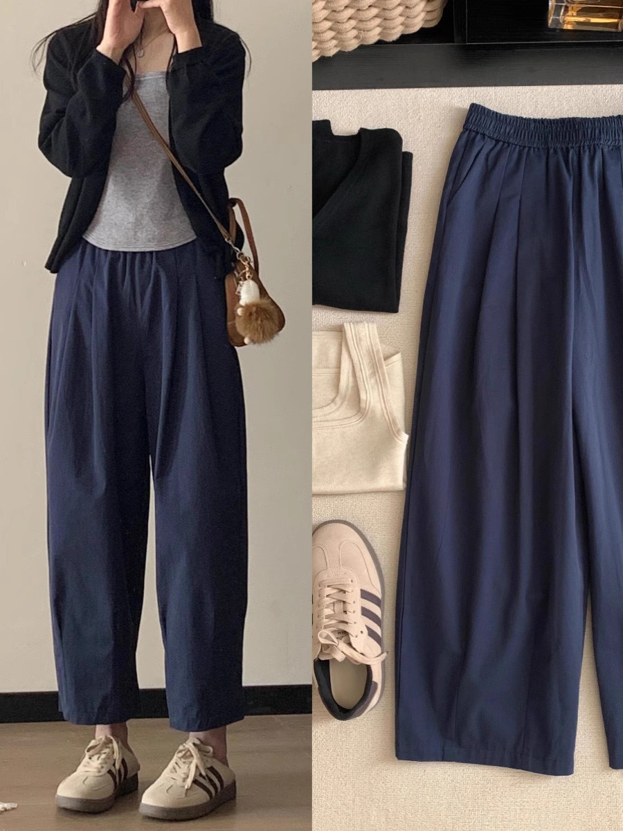 일본식 게으른 스타일 낫 캐주얼 바지 여성 플러스 사이즈 통통녀 배 모양의 바디, 느슨한 허리 9 점 할란 할머니 바지스토어 가기