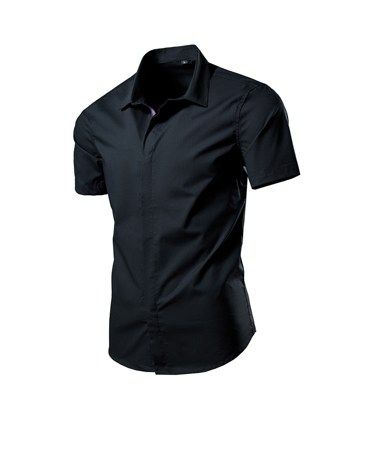 남자 꿀벌 슬림 수 놓은 반팔 셔츠 비즈니스 캐주얼 셔츠 한 세대 대외 무역 1020-P45
