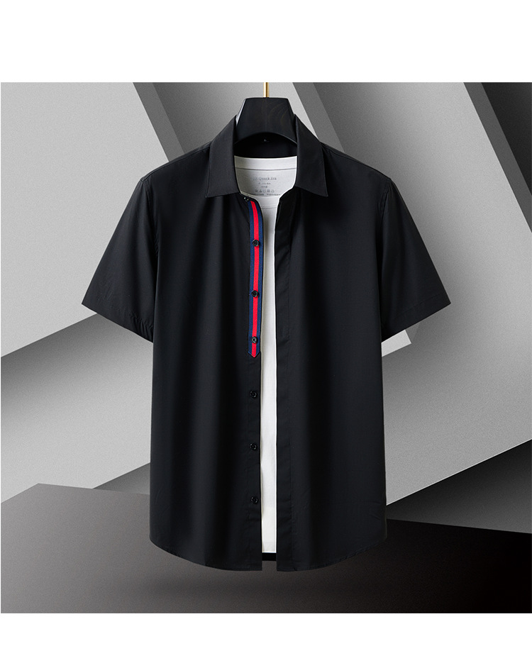 남자 꿀벌 슬림 수 놓은 반팔 셔츠 비즈니스 캐주얼 셔츠 한 세대 대외 무역 1020-P45
