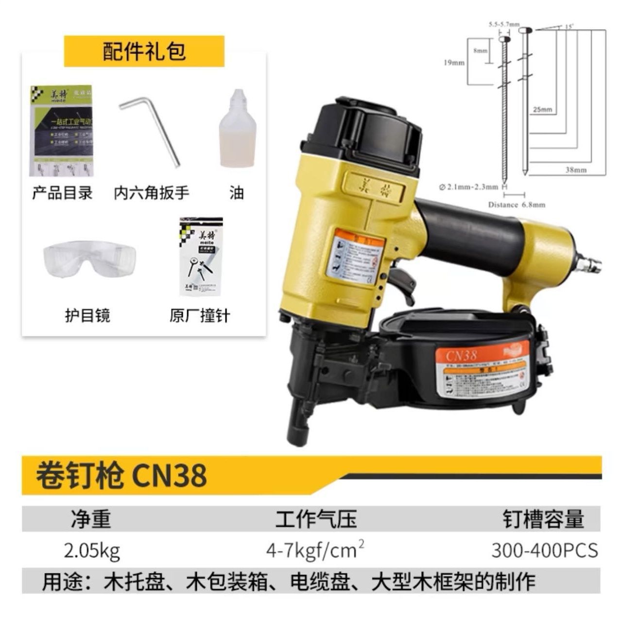 • Meite CN38 롤 네일 건(원래 발사 핀과 함께 제공)
