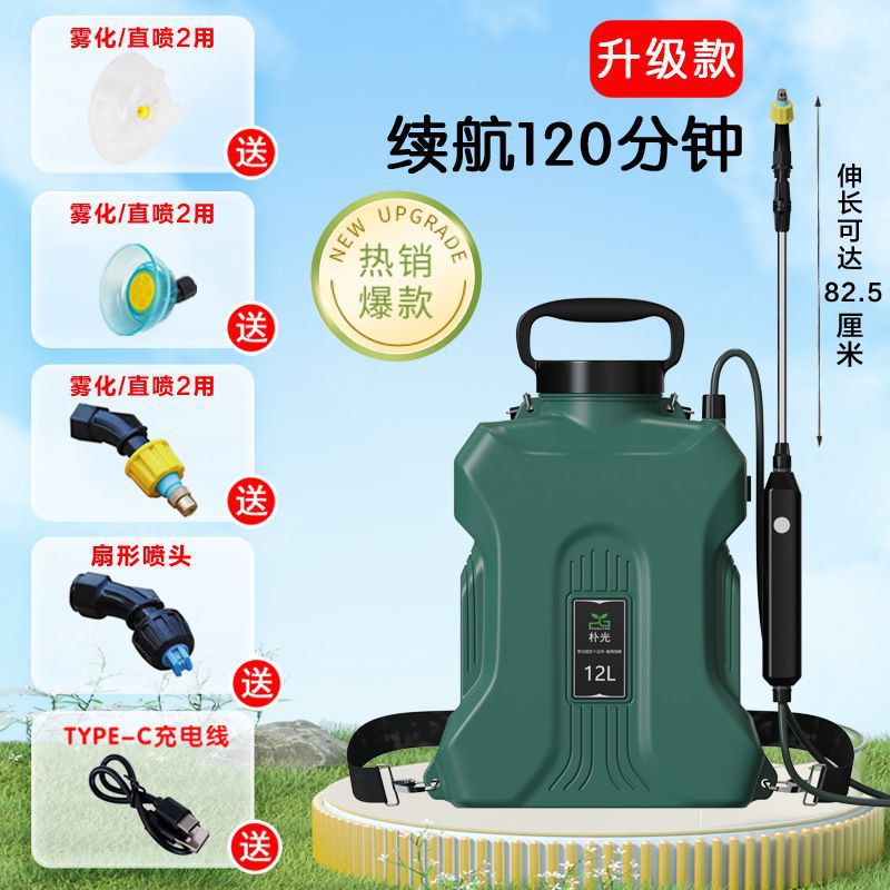 • 12리터 두꺼운 녹색 배럴 [배터리 수명 120분 + 노즐 4개]