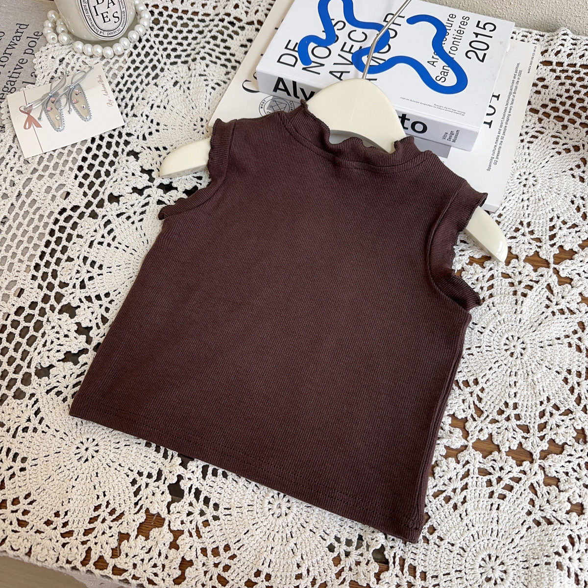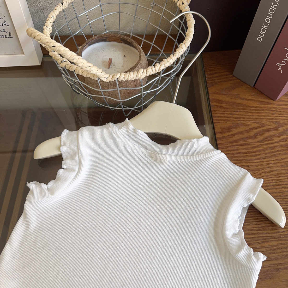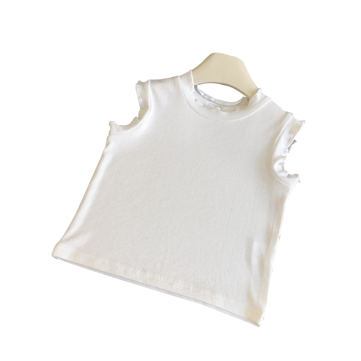 여자 조끼 티셔츠 2025 여름 새로운 나무 귀 단색 인테리어 어린이 외국 스타일 민소매 기본 셔츠 국경스토어 가기