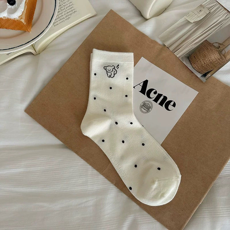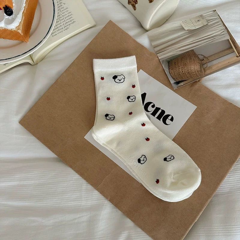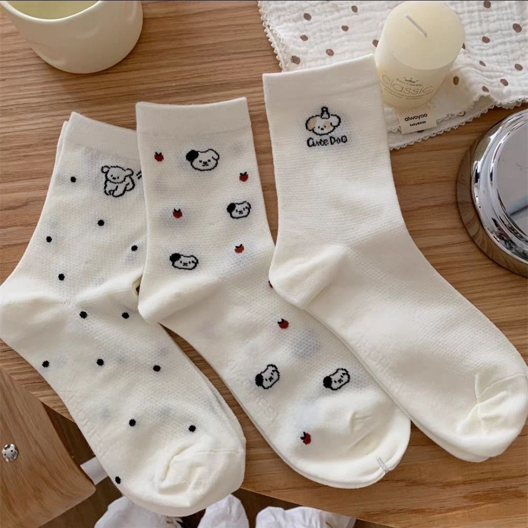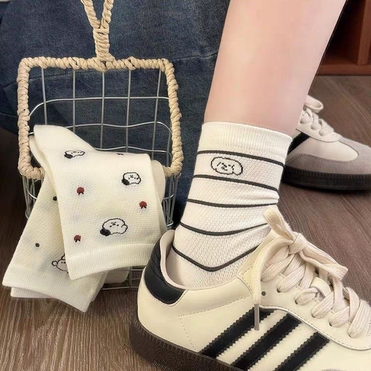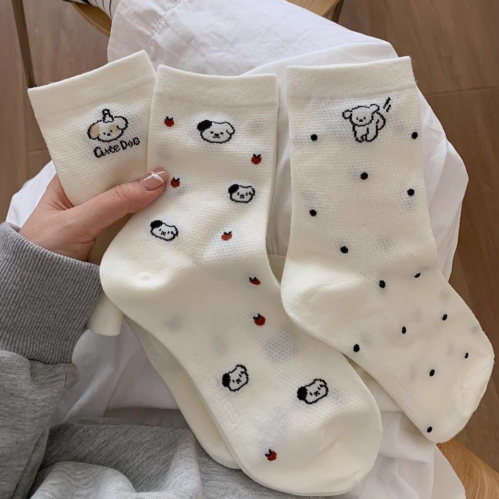 양말 여성의 봄과 여름 새로운 미드 튜브 여성용 양말 메쉬 얇은 귀여운 화이트 카론 양말 소금 스위트 스타일 가리 양말스토어 가기