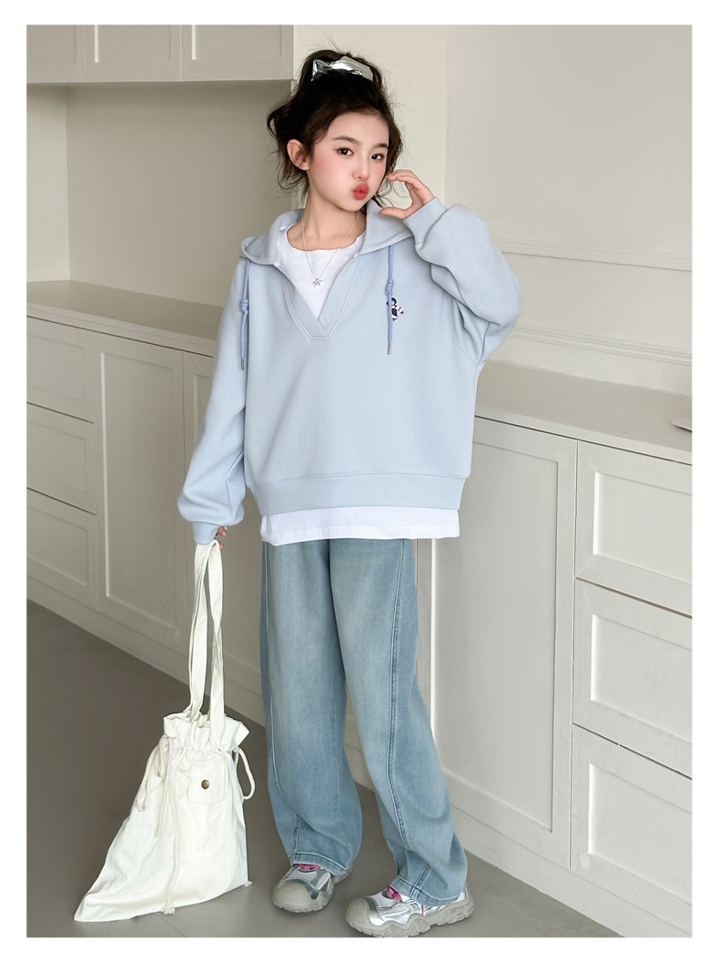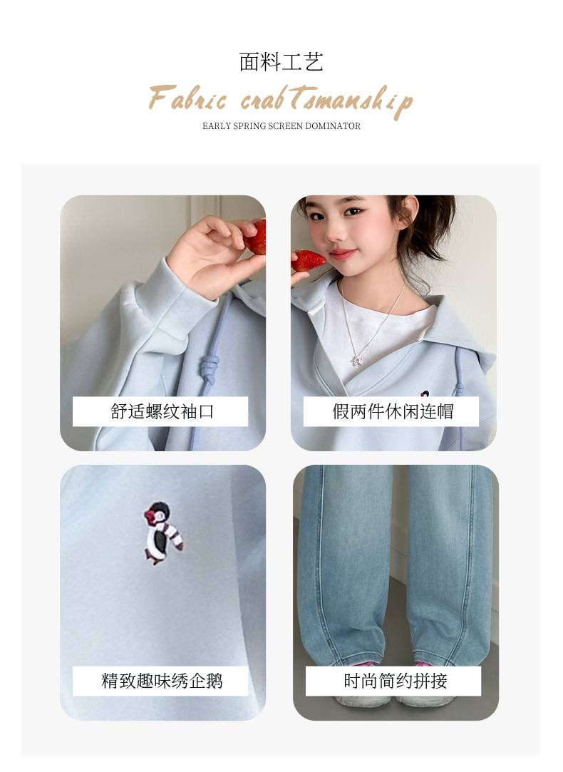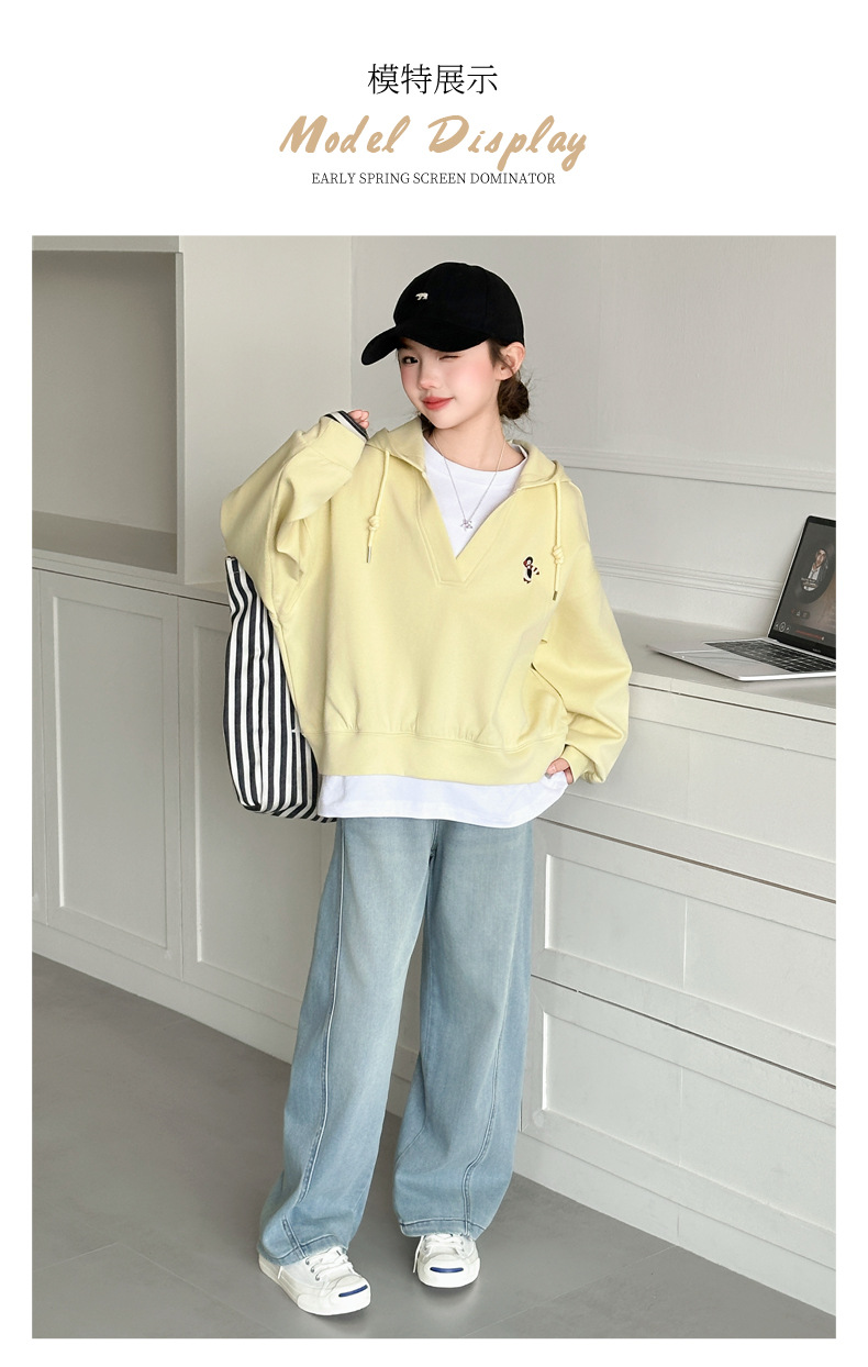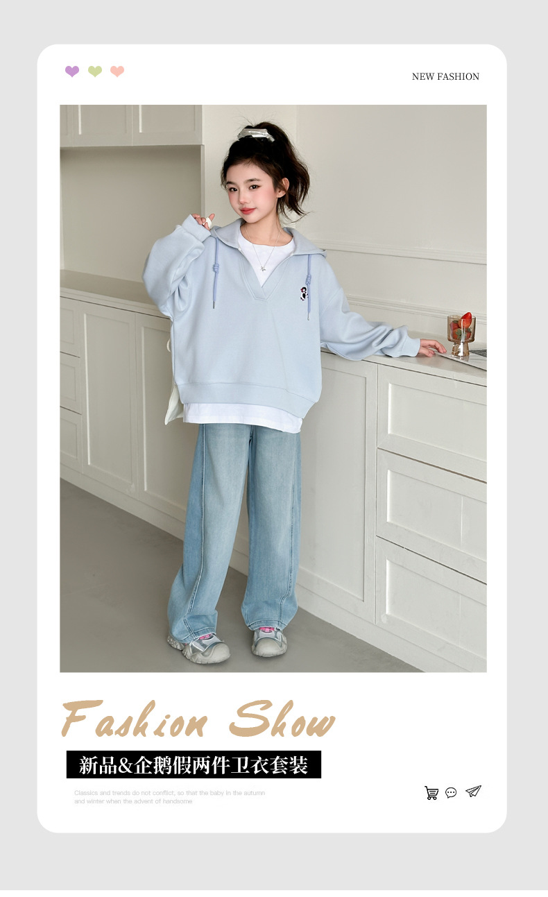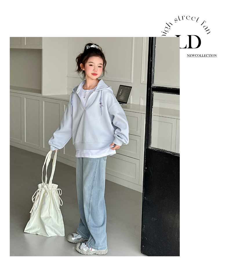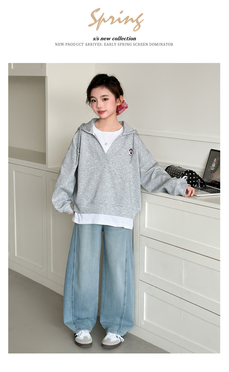 소녀의 봄과 가을 스웨트 셔츠 세트 2025 새로운 서양식 큰 어린이 봄 한국 최고의 어린이 청바지 투피스 세트스토어 가기