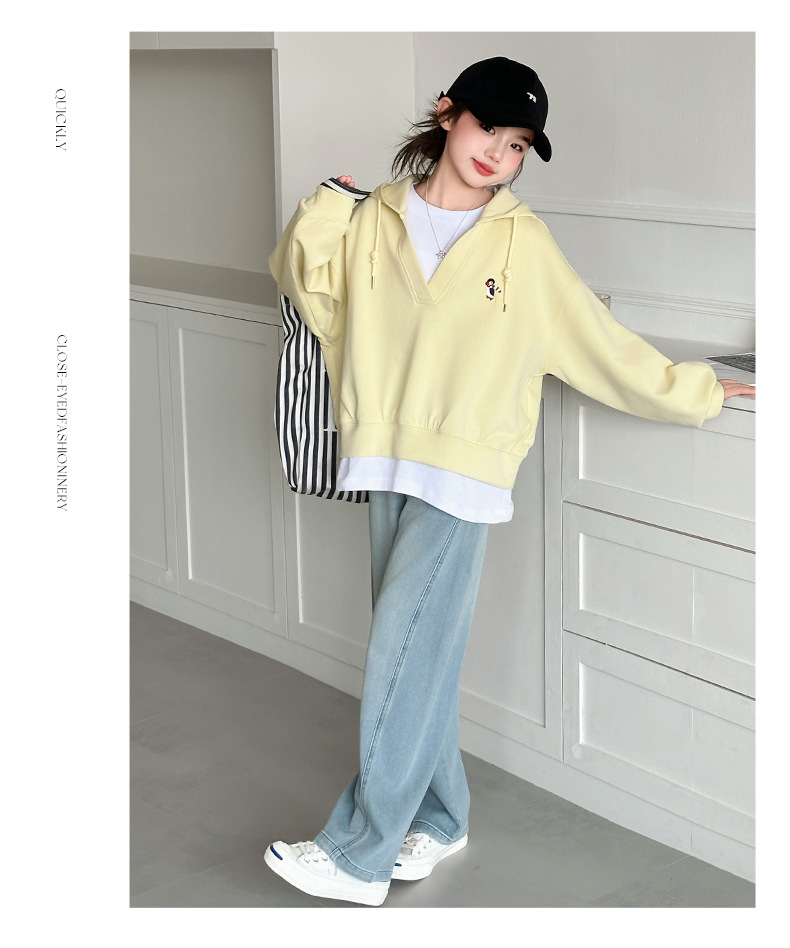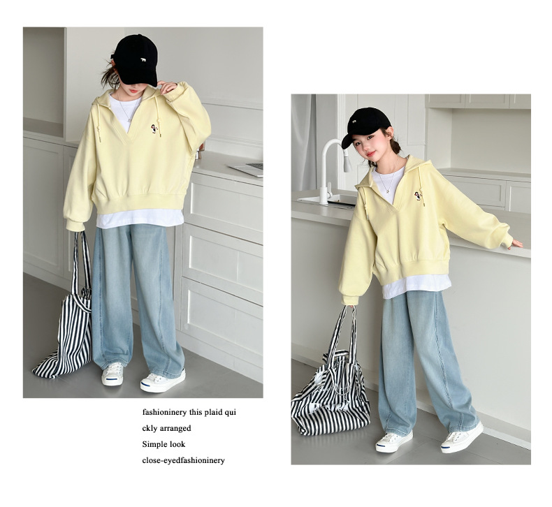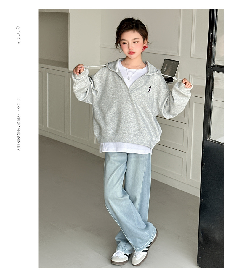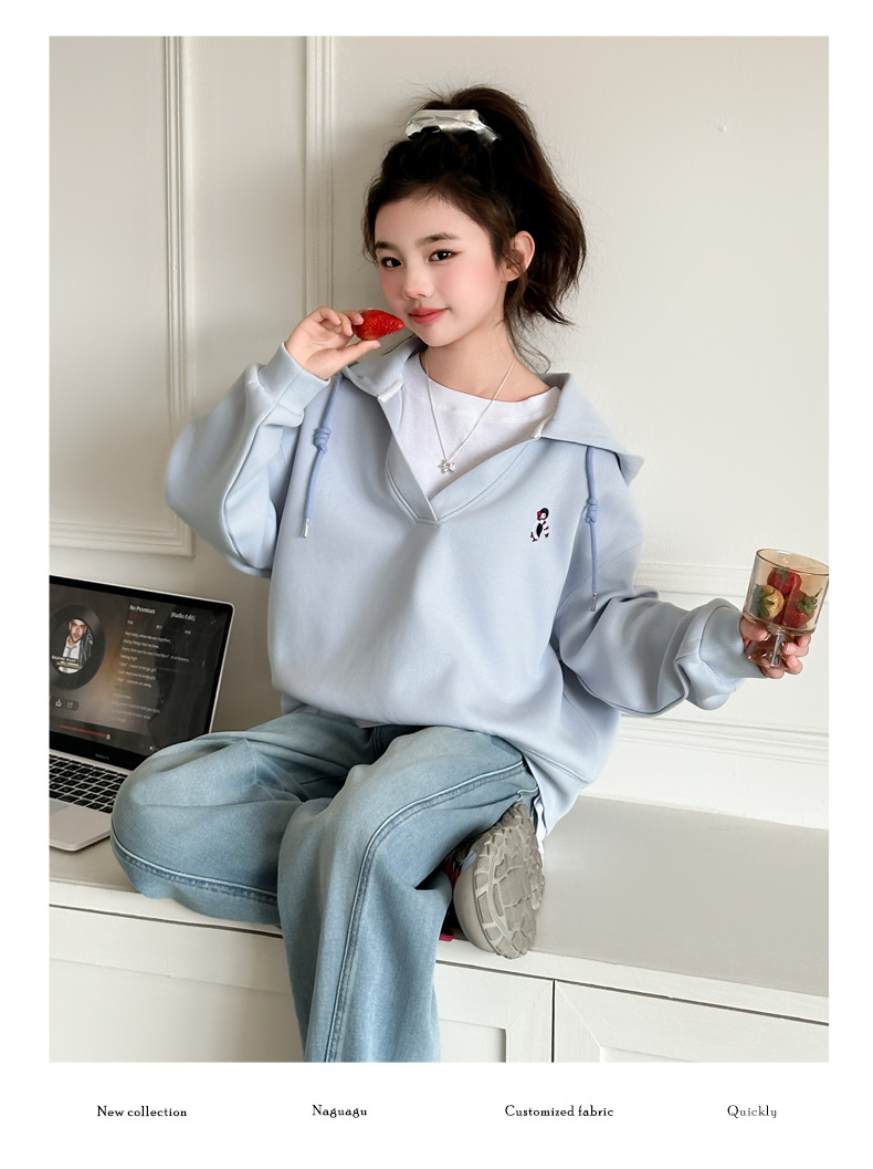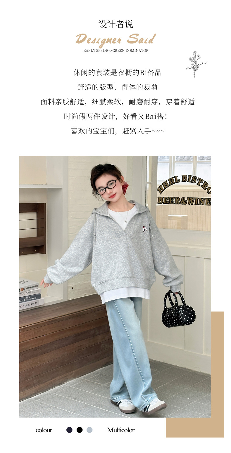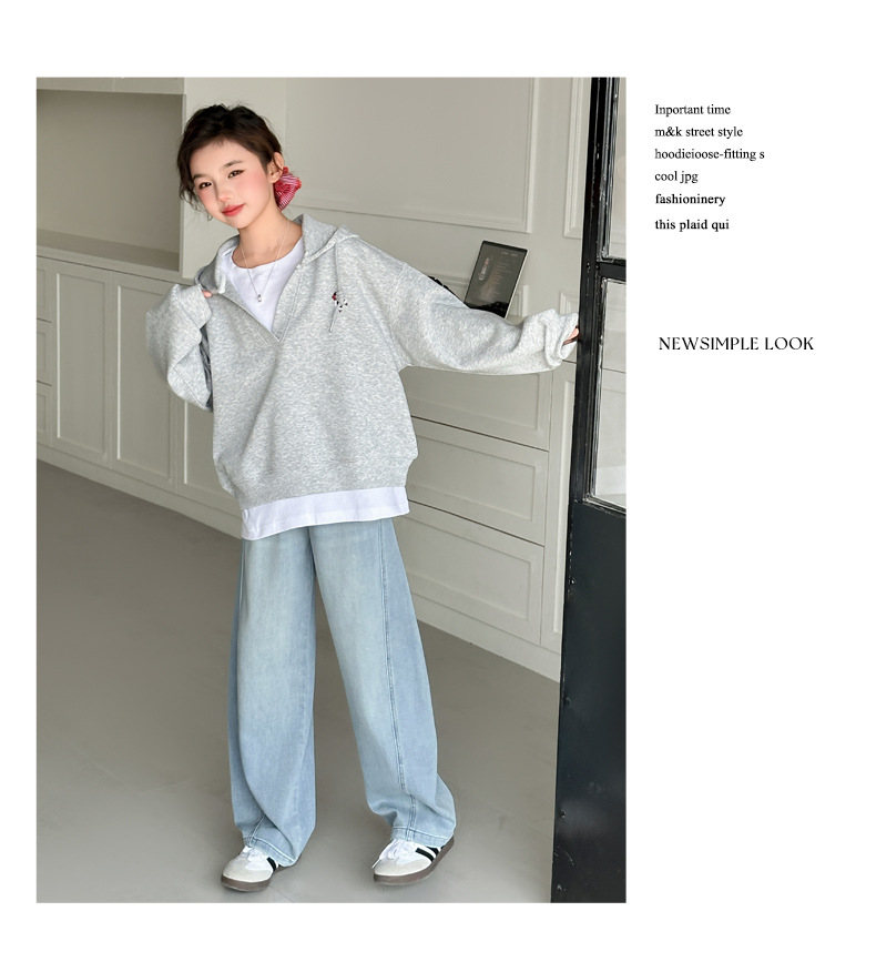 소녀의 봄과 가을 스웨트 셔츠 세트 2025 새로운 서양식 큰 어린이 봄 한국 최고의 어린이 청바지 투피스 세트스토어 가기