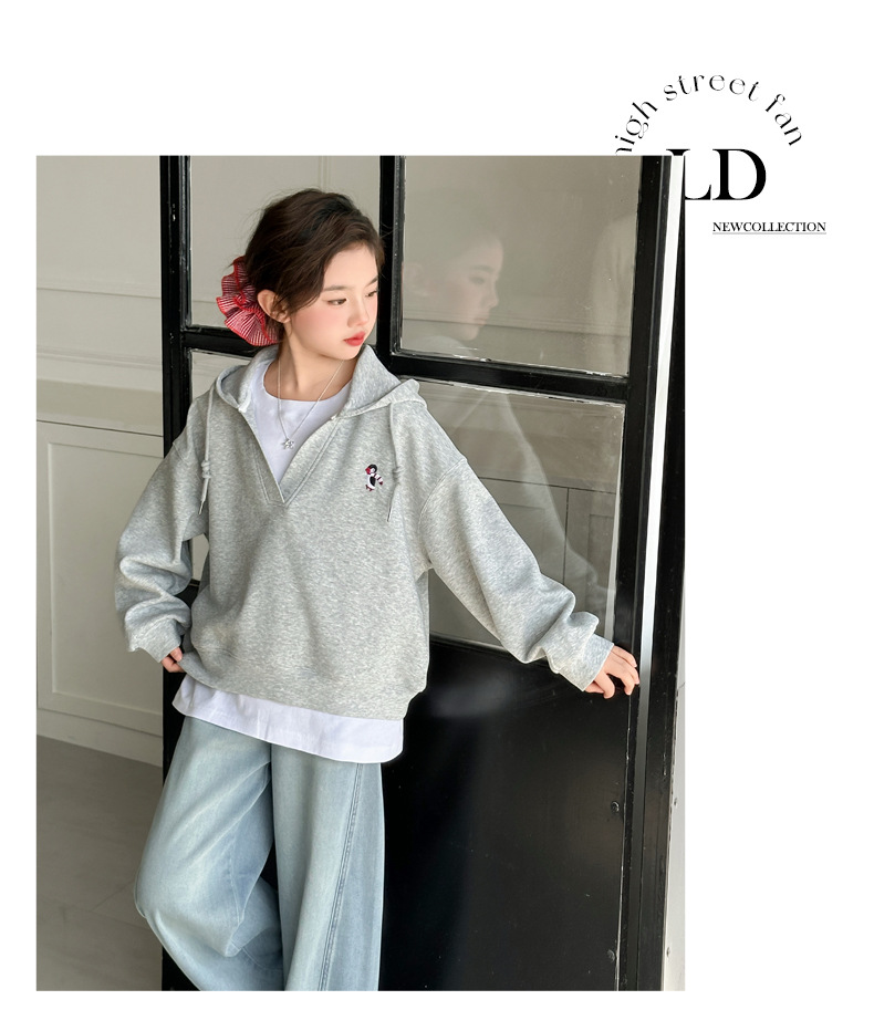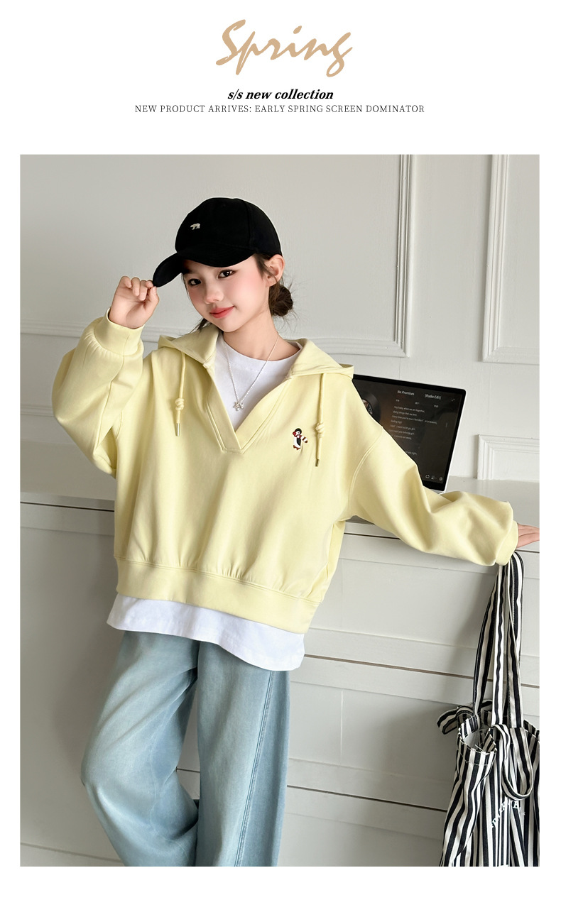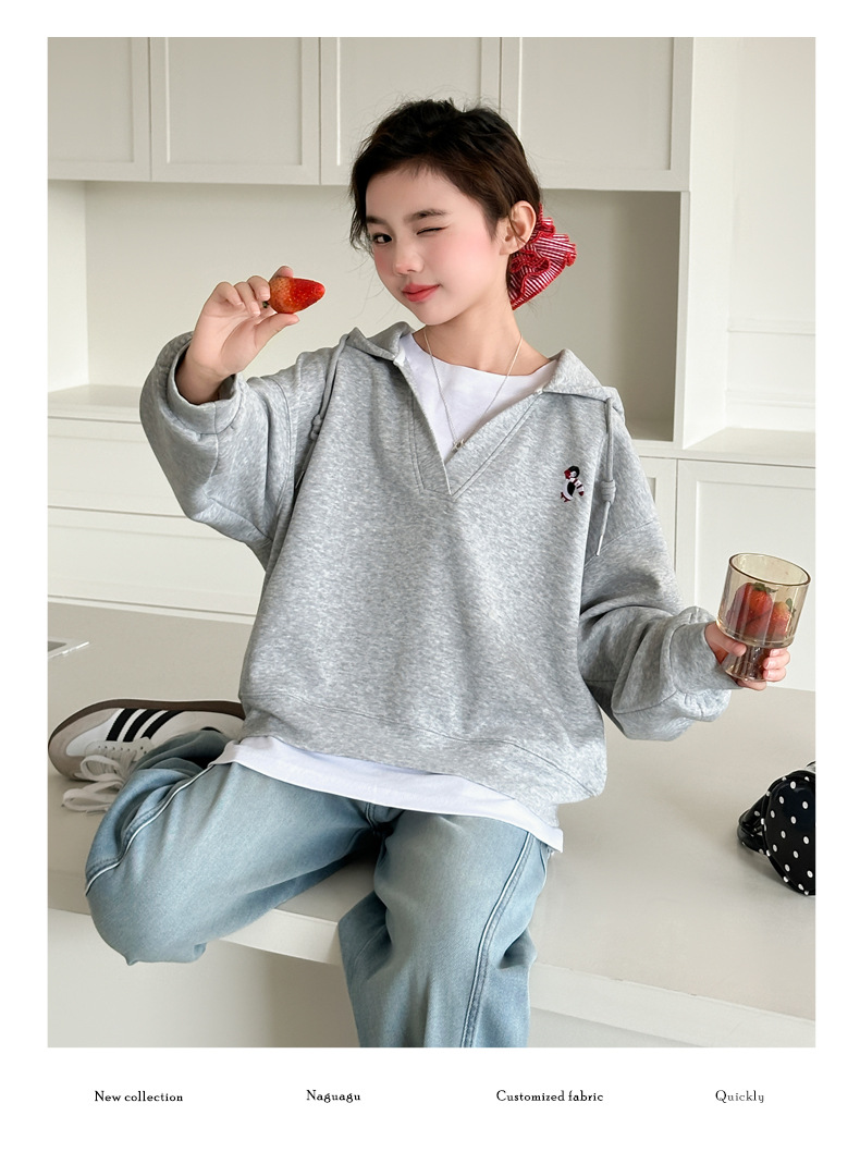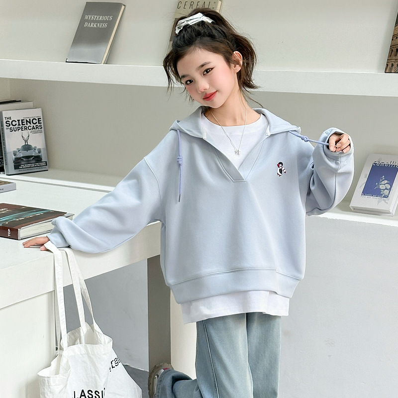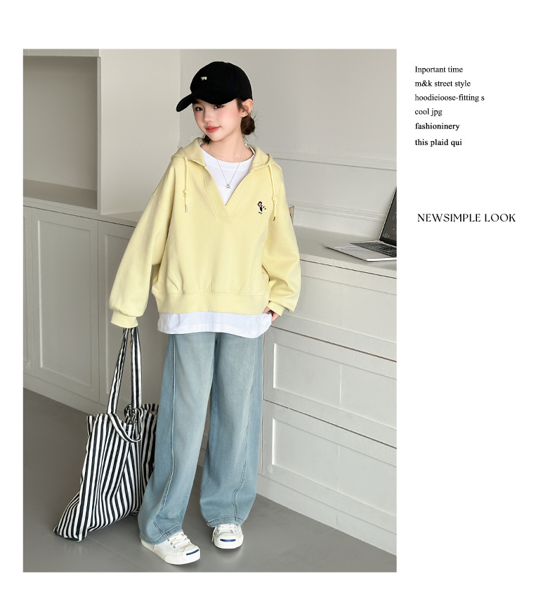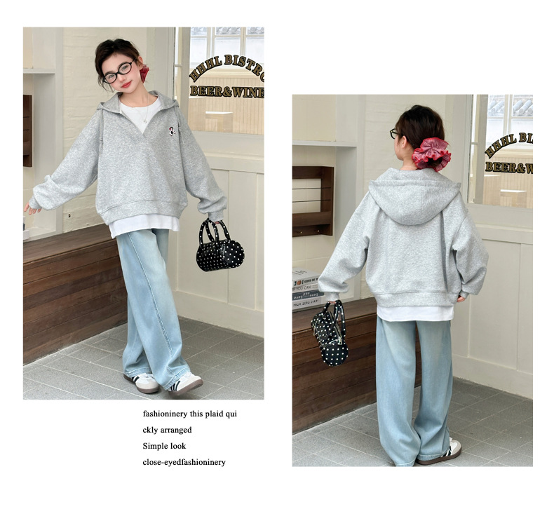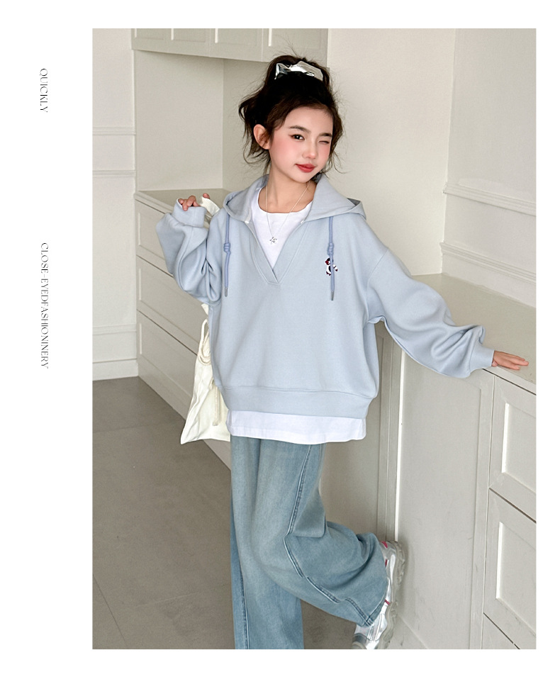 소녀의 봄과 가을 스웨트 셔츠 세트 2025 새로운 서양식 큰 어린이 봄 한국 최고의 어린이 청바지 투피스 세트스토어 가기
