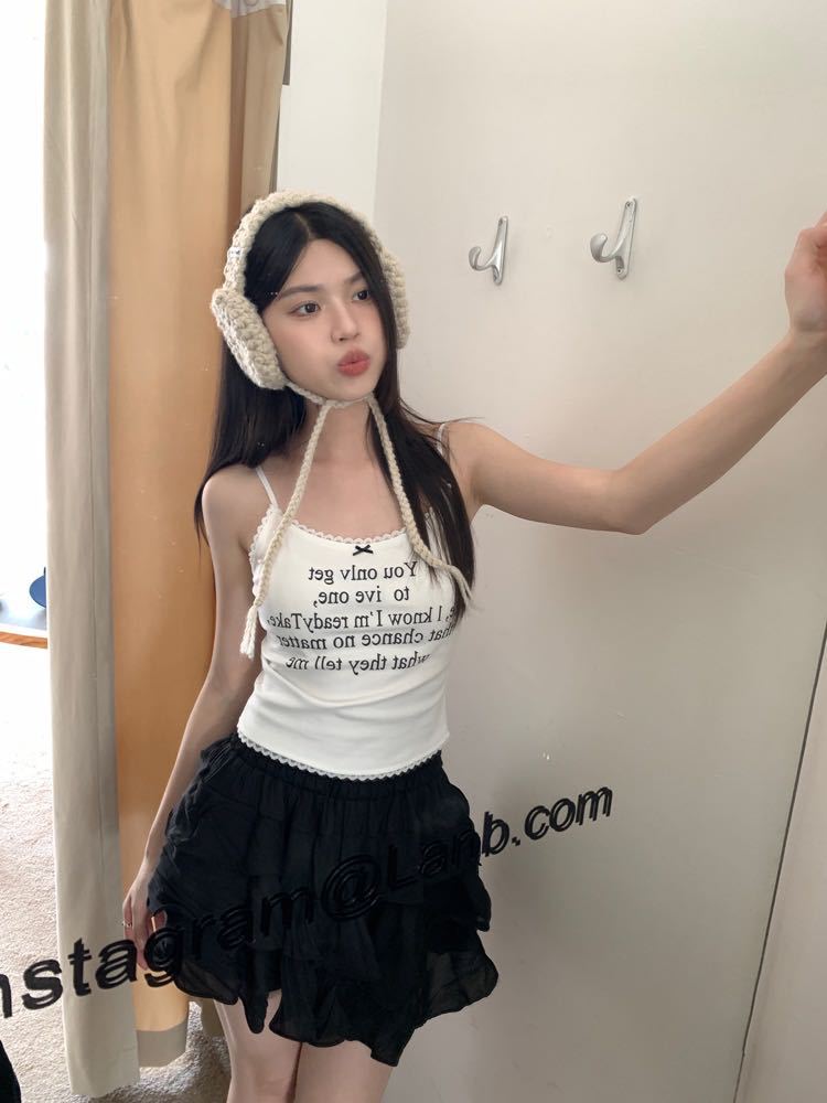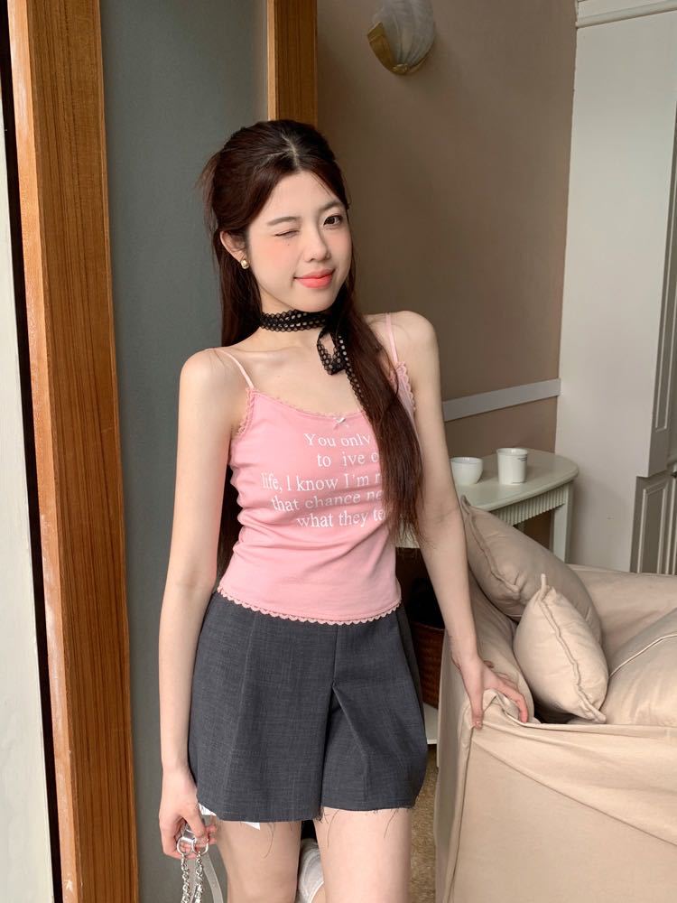 여름 새 스타일 조끼 슬링 여성 프린트 캐주얼 달콤하고 매운 바닥 셔츠 보우 레이스 퓨어 러스티 니치 탑