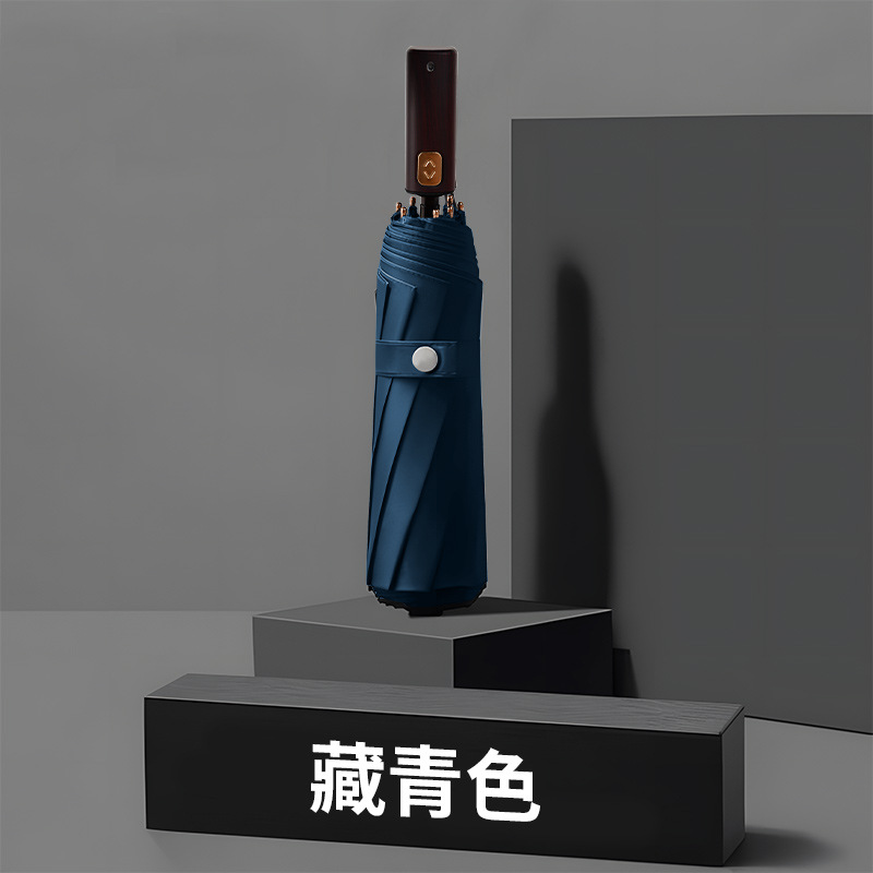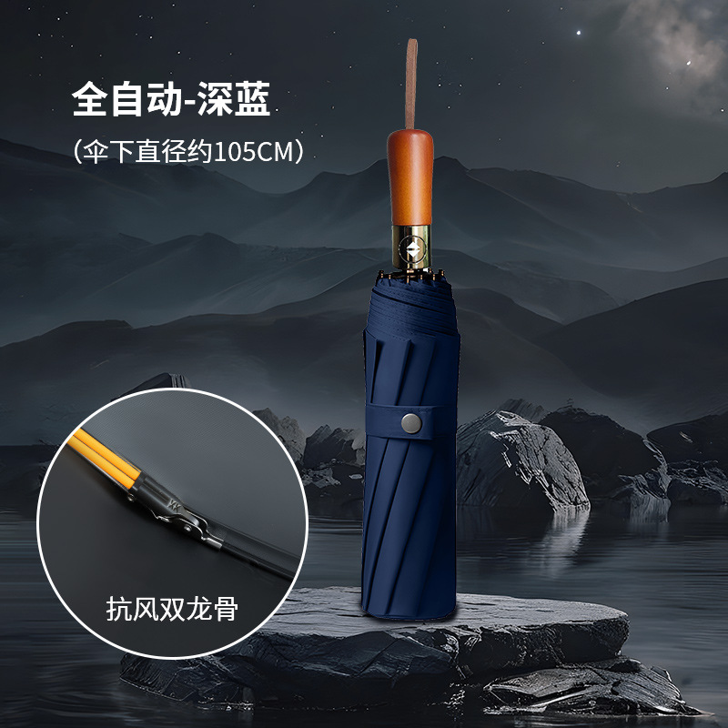• 나무 손잡이가 달린 자동 우산 - 네이비 블루