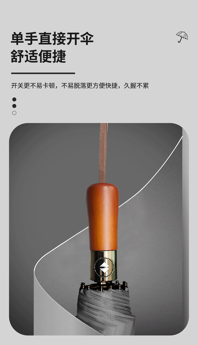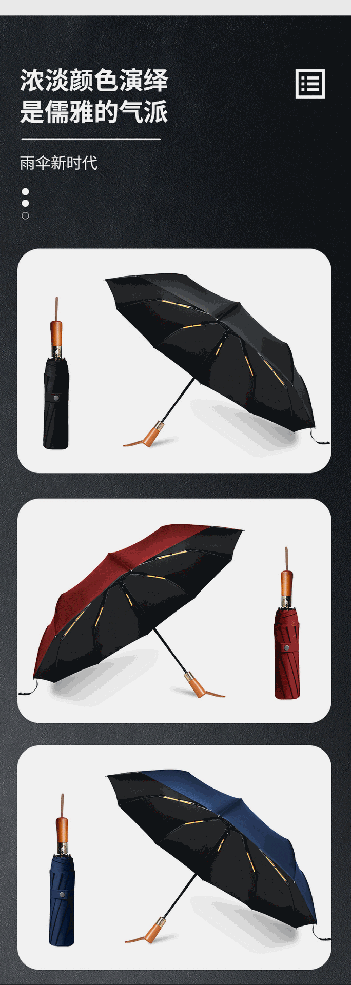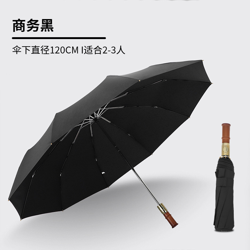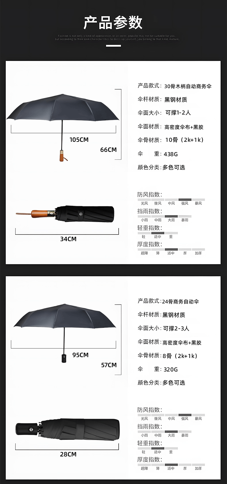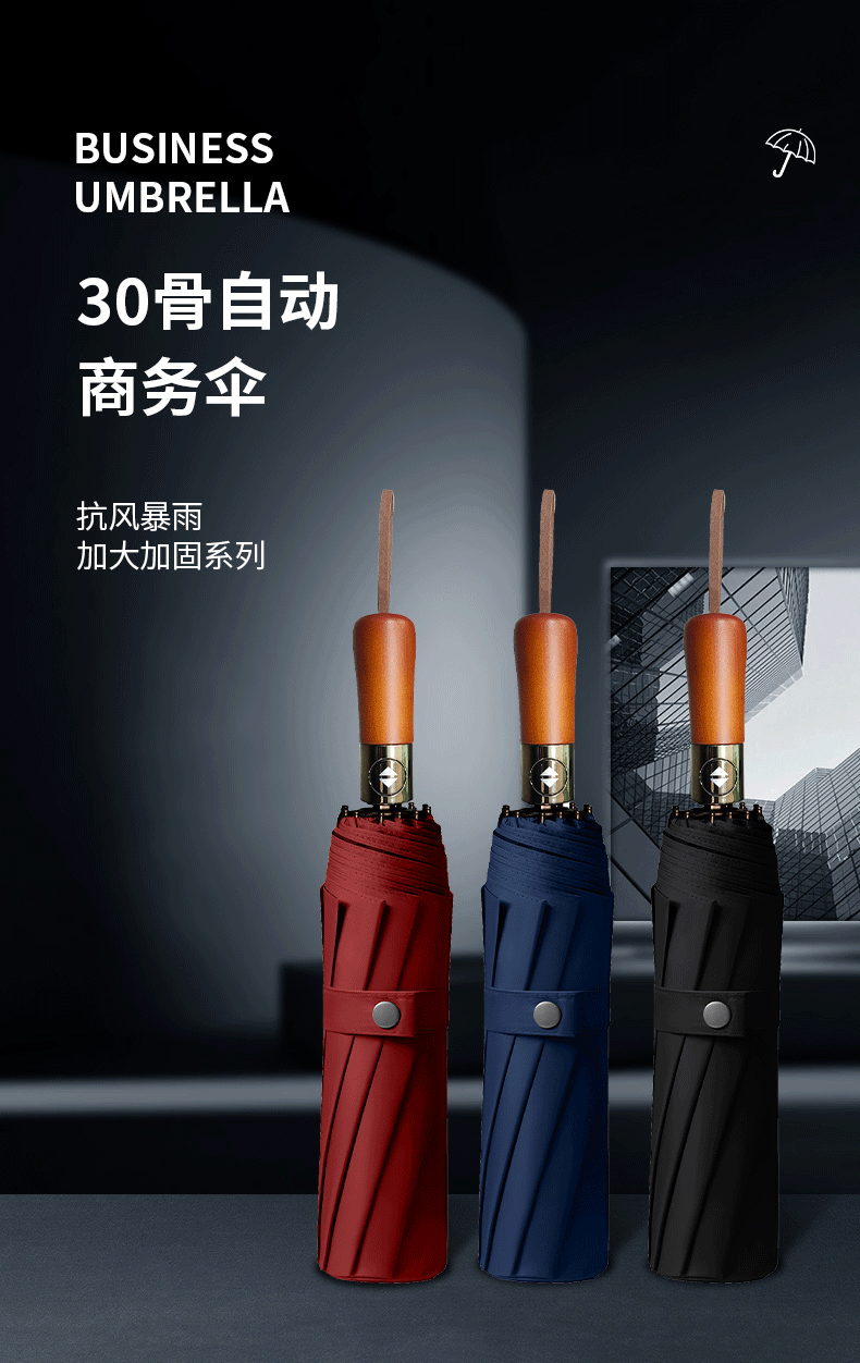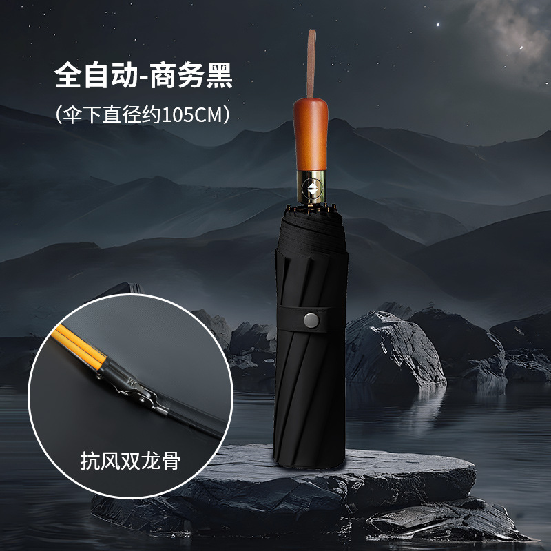 • 나무 손잡이가 달린 자동 우산 - 비즈니스 블랙
