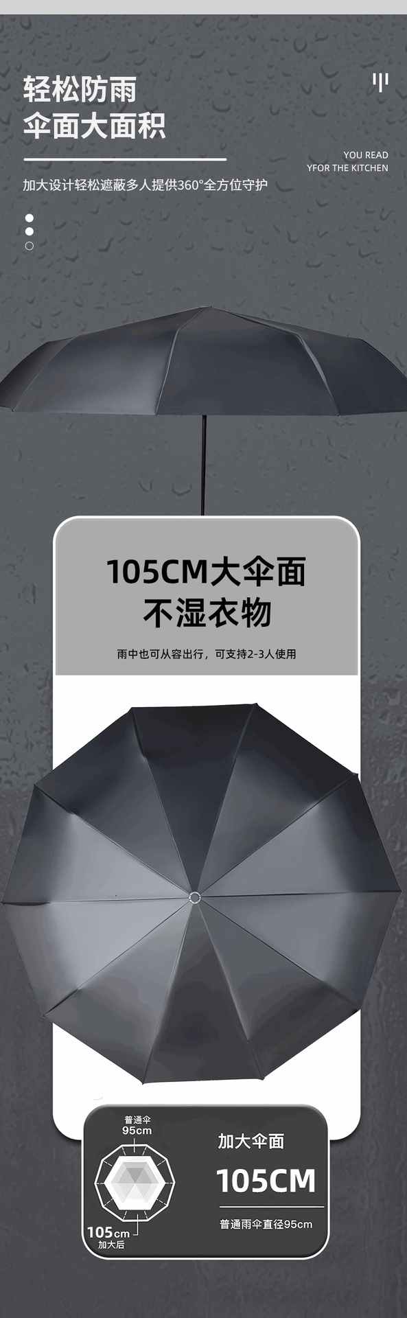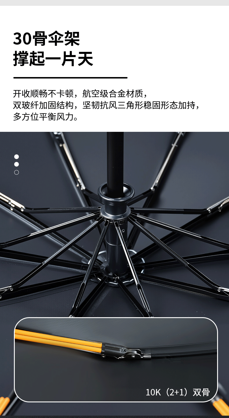 • 10본 자동우산 가죽 케이스 - 비즈니스 블랙, 확대된 우산 표면