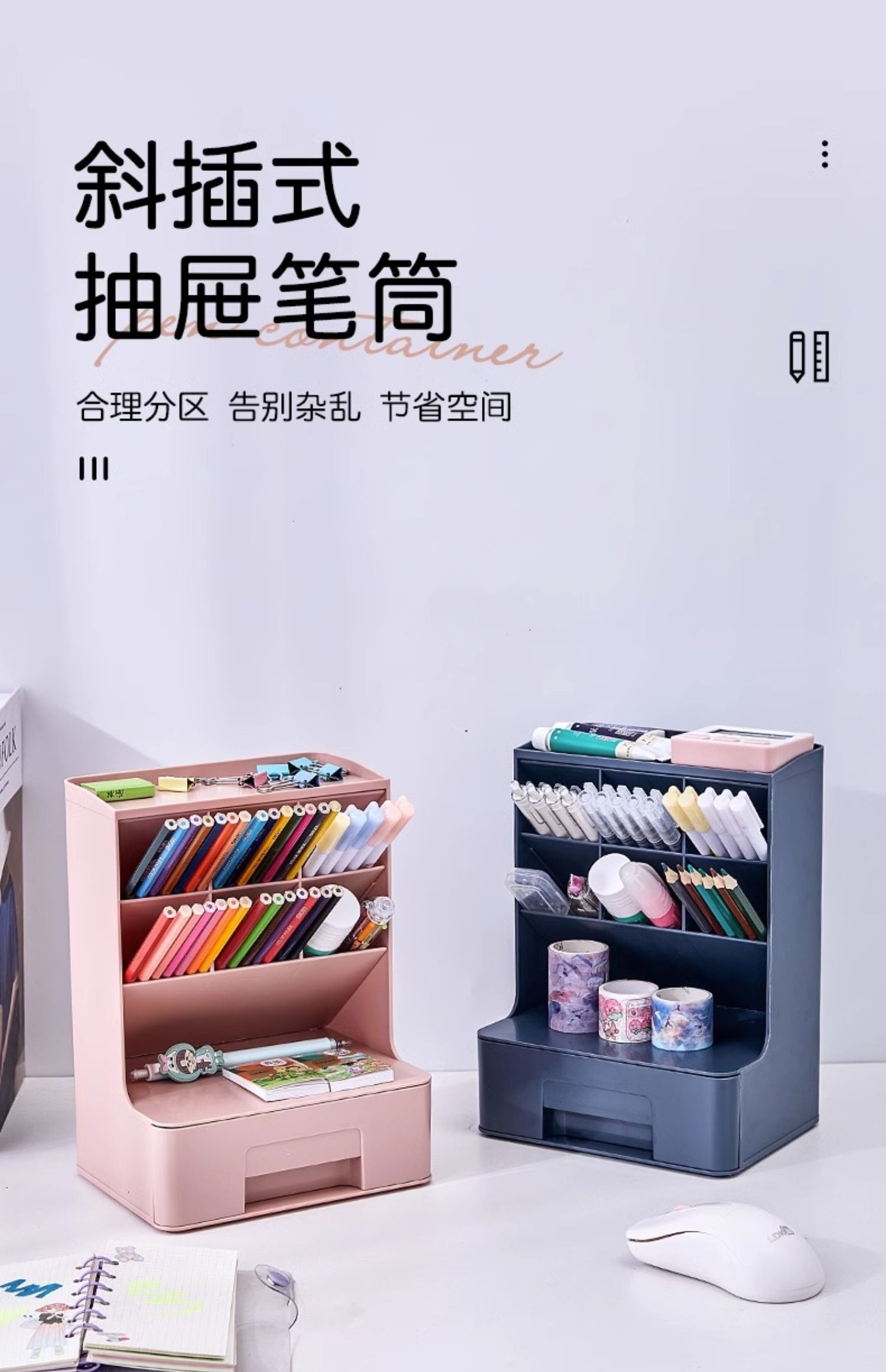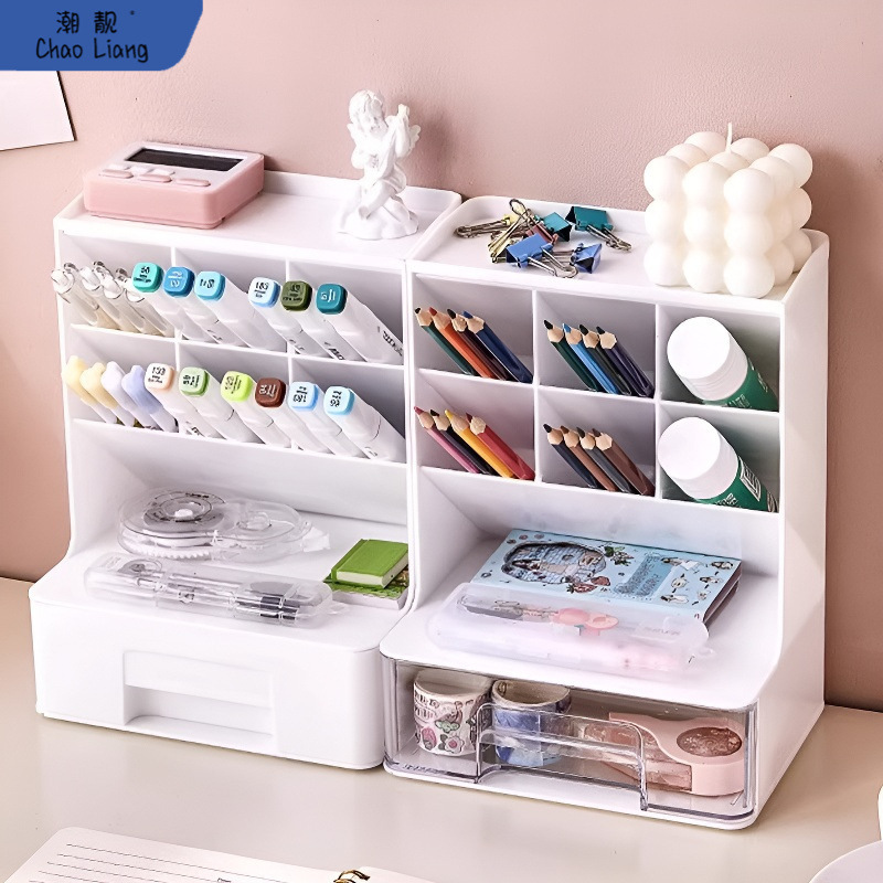 비스듬한 펜 홀더 데스크탑 잡화 책상 보관 상자 학생 어린이 문구 보관 랙 기숙사 무료 배송