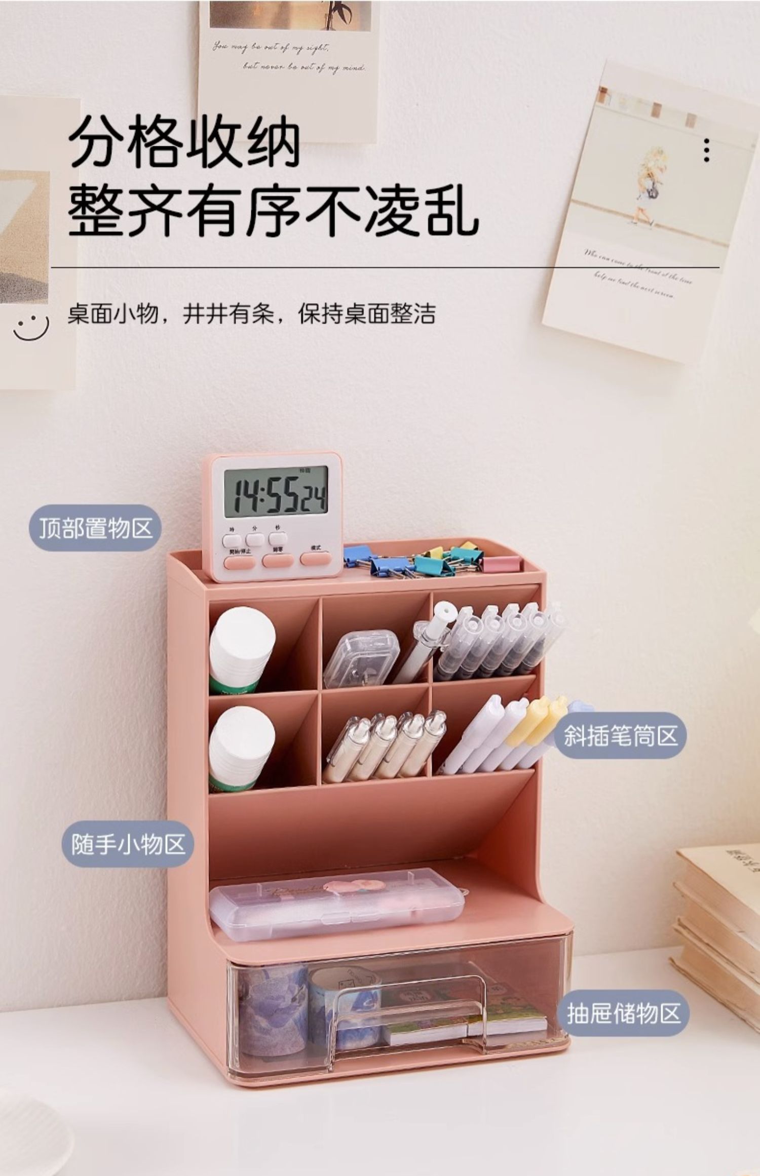 비스듬한 펜 홀더 데스크탑 잡화 책상 보관 상자 학생 어린이 문구 보관 랙 기숙사 무료 배송스토어 가기