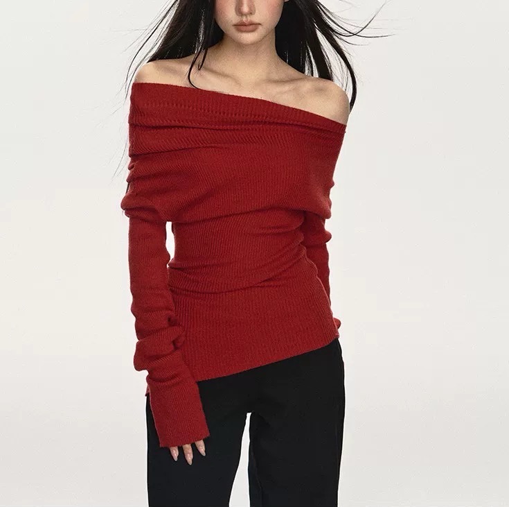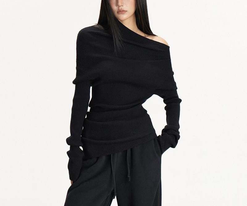 안나 네아 다크 그레이 긴팔 스웨터 여성 봄 슬림 핏 디자인 오프 숄더베이스 터틀넥 스웨터스토어 가기