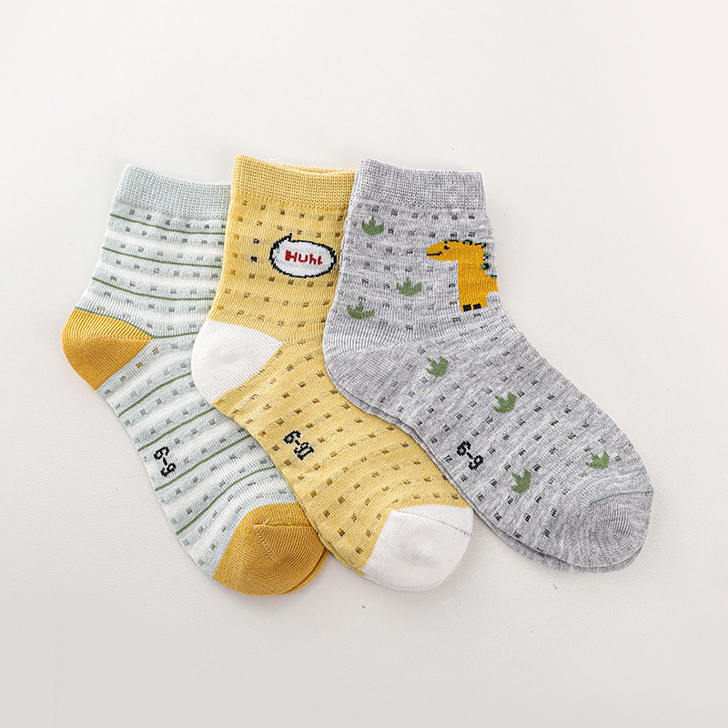 • 【3쌍】2#노란색과 회색 공룡 양말(4-10세)