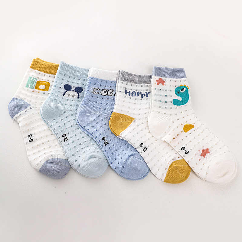 • 【5쌍】12#파란색과 흰색 만화 양말(4-10세)