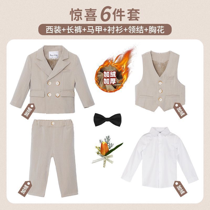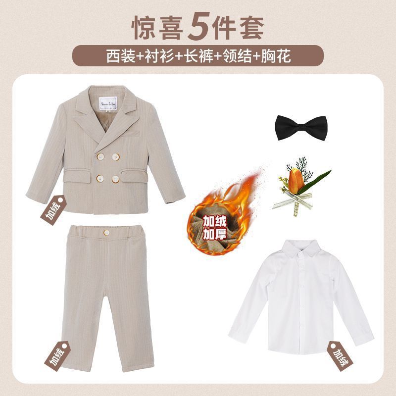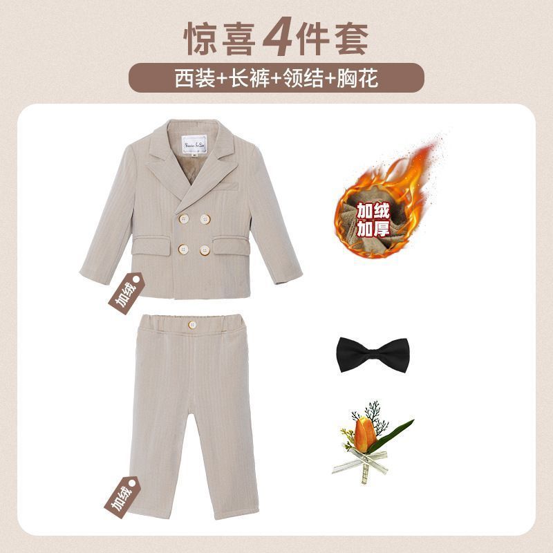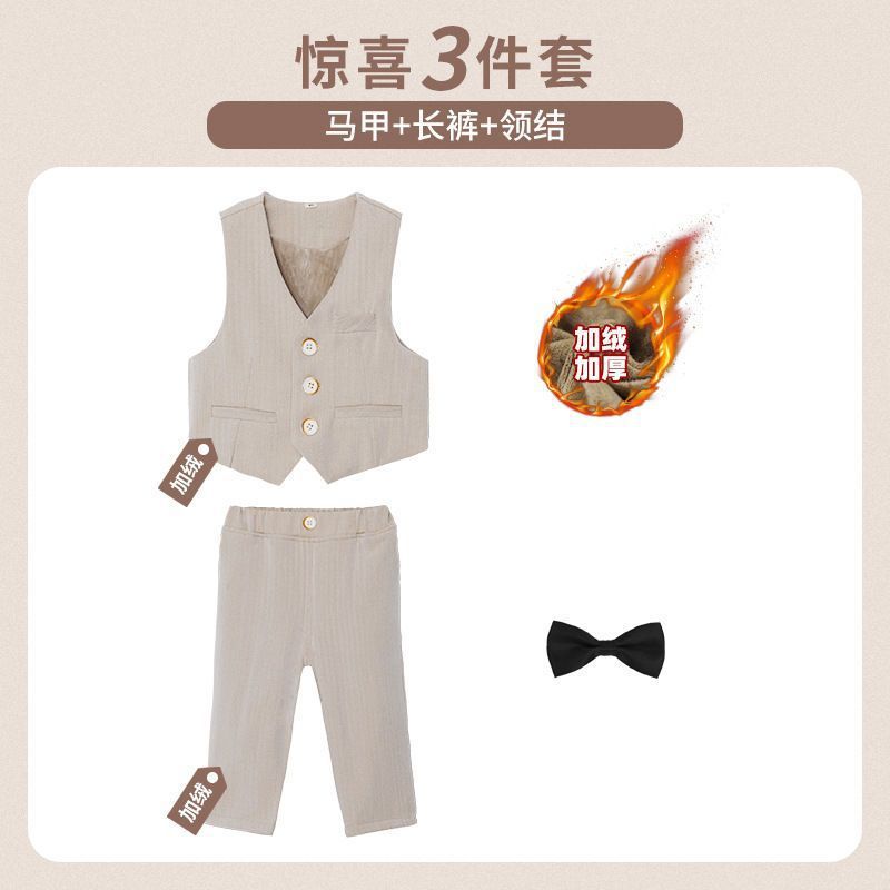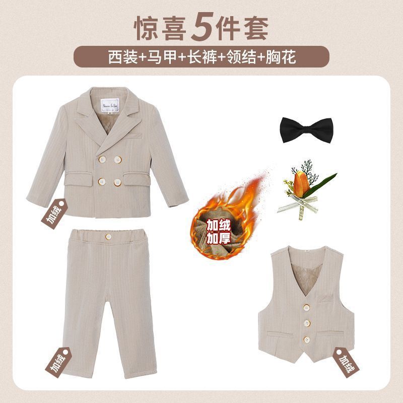 • 벨벳 베이지 재킷 + 조끼 + 바지 + 나비넥타이 코사지