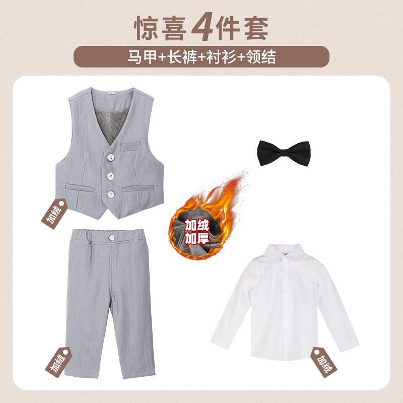 • 회색 조끼 + 바지 + 셔츠 + 나비넥타이 (꽃 제외)