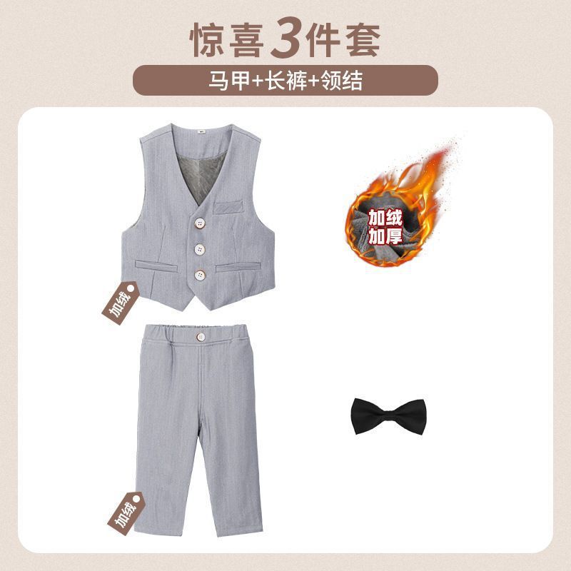 • 벨벳 그레이 재킷 + 조끼 + 바지 + 나비넥타이 + 코사지