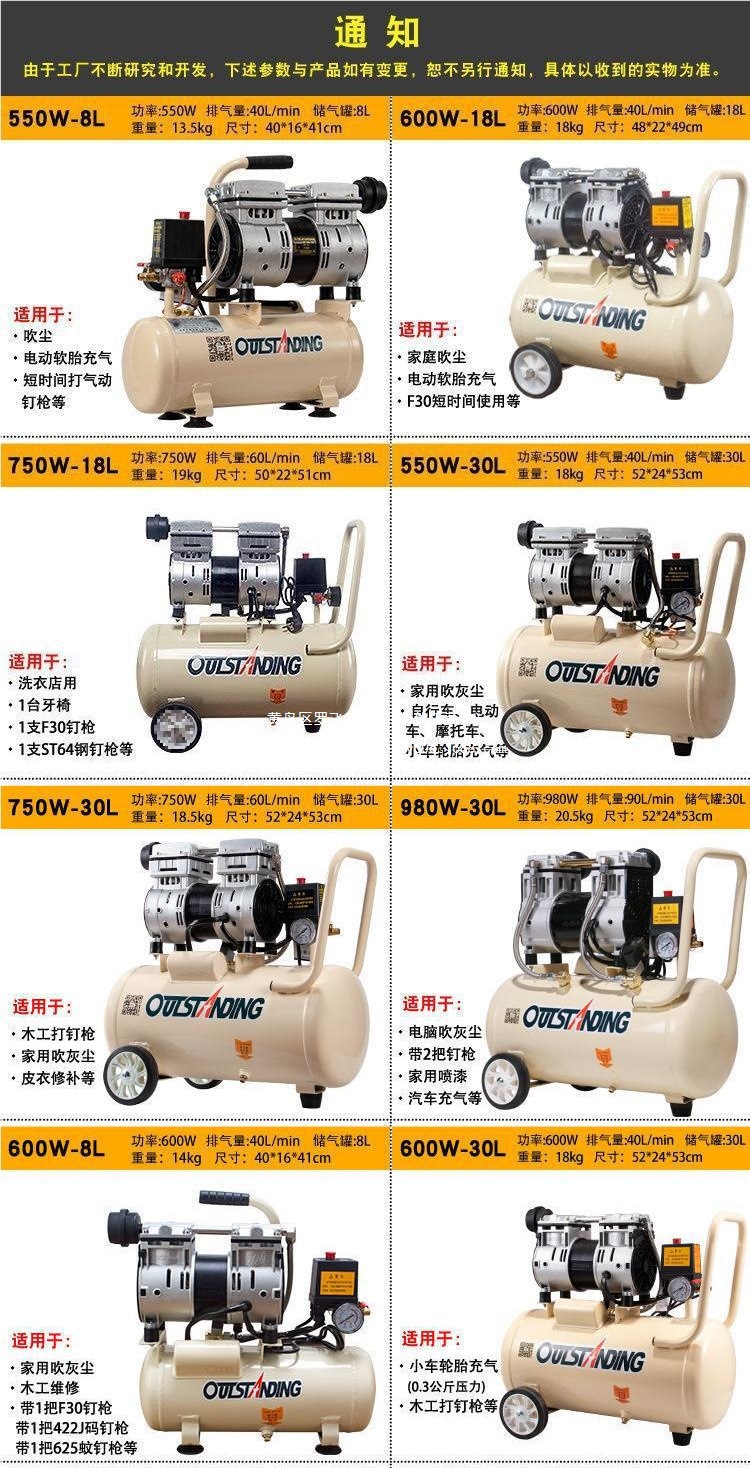 Otus 공기 펌프 공기 압축기 작은 공기 압축기 팽창 식 오일이없는 음소거 220V 목공 페인트 펌프