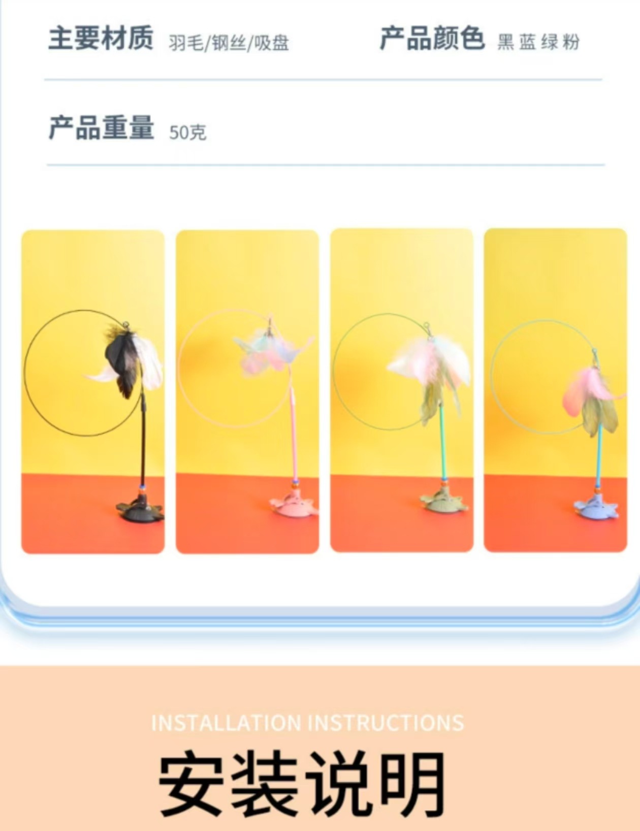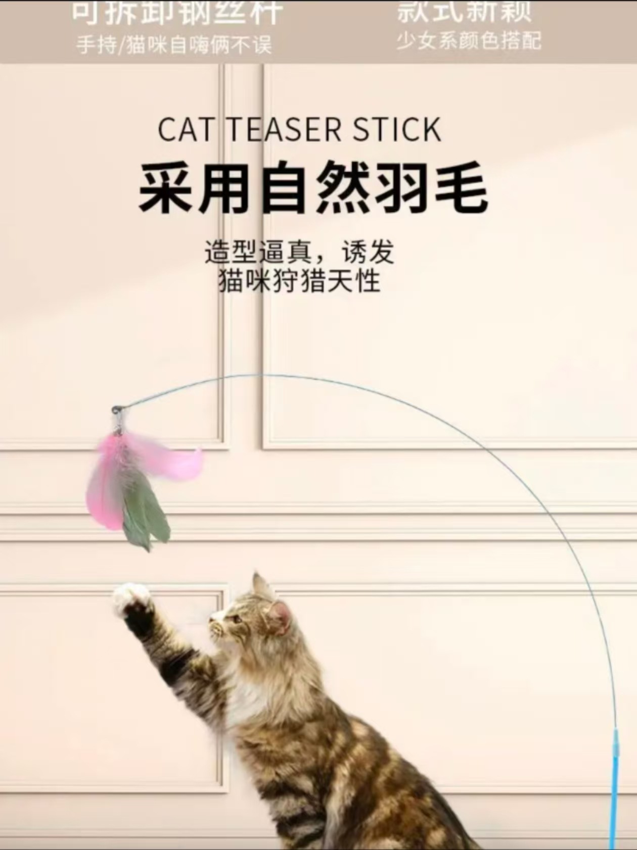 새로운 고양이 얼굴 빨판 고양이 스틱 강한 빨판 긴로드 스틸 와이어 교체 가능한 깃털 벨 애완 동물 용품스토어 가기