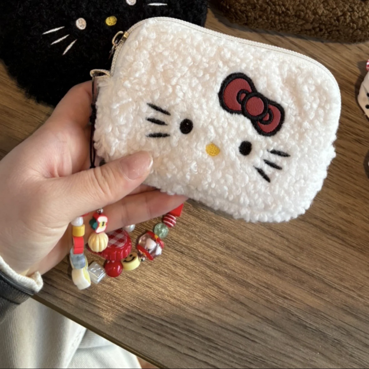 • 흰색 양털 키티 수납 파우치